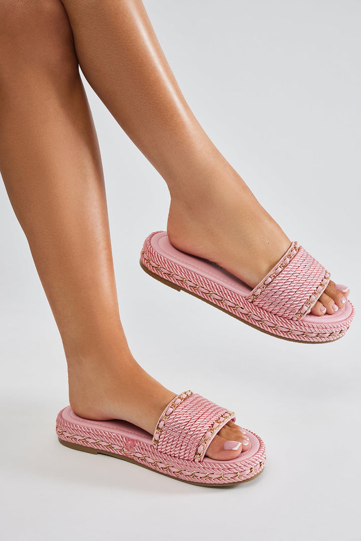 Available In Pink. | Flat Sandals | Jute | Round Toe | Flat Heel | Imported
