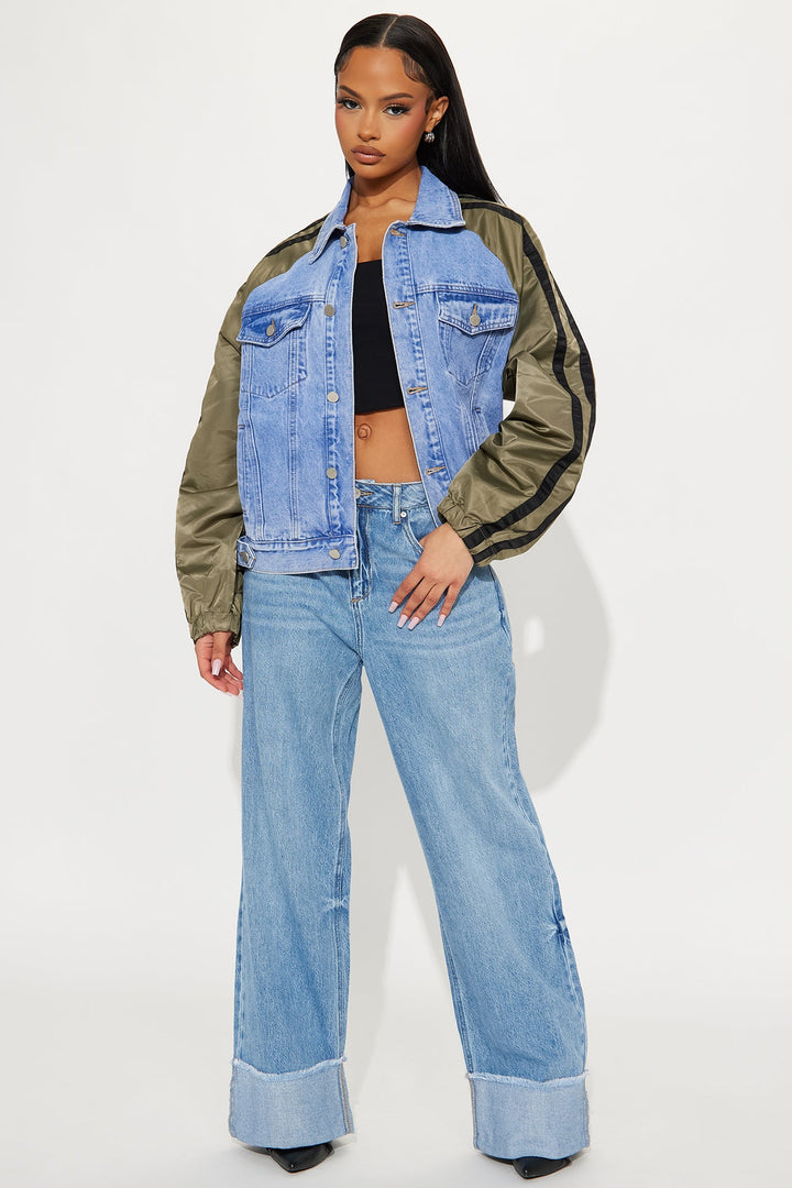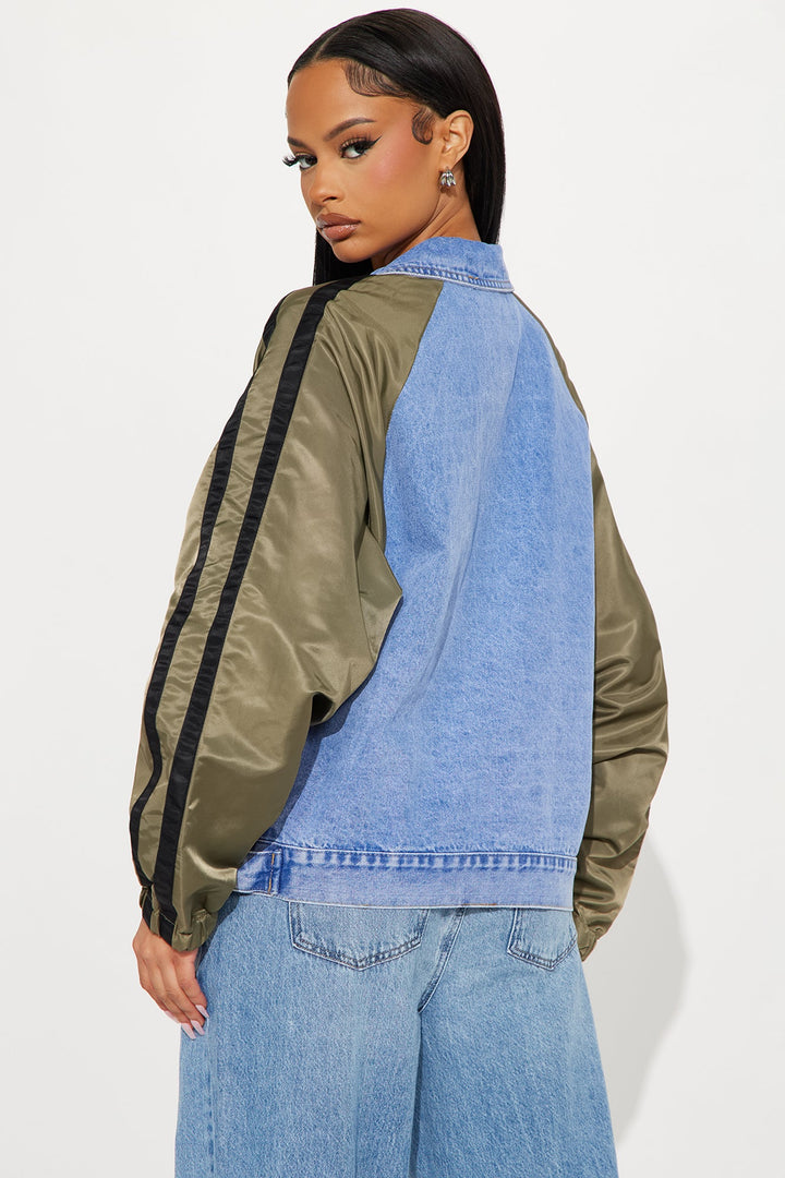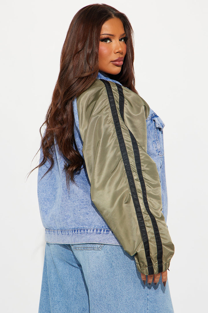 Stray Away Mix Media Denim Jacket - Medium Wash