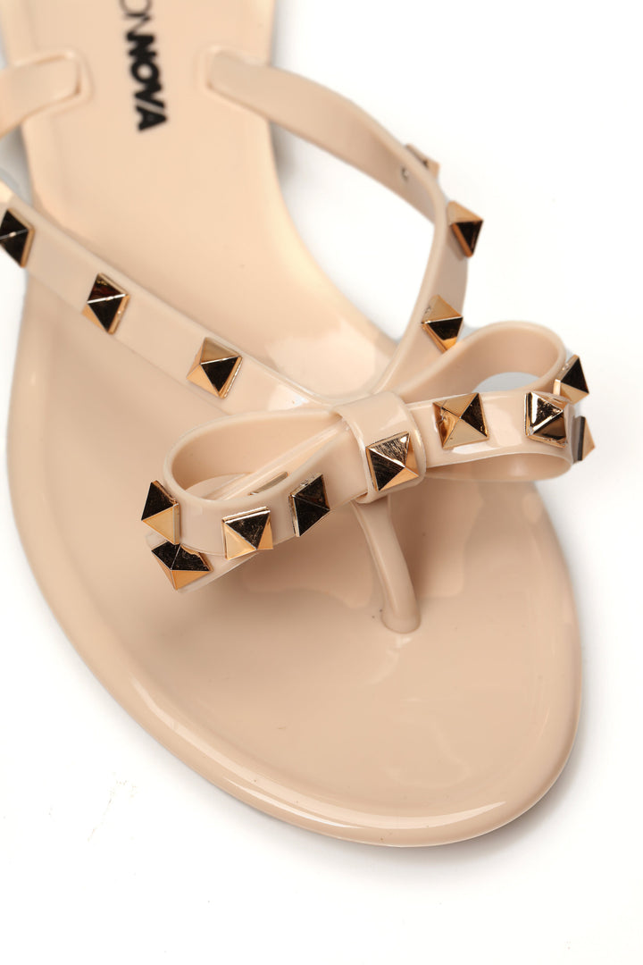 Available In Black, Blush, Brown And Red. | Thong Jelly Sandal | Stud Detail | Imported