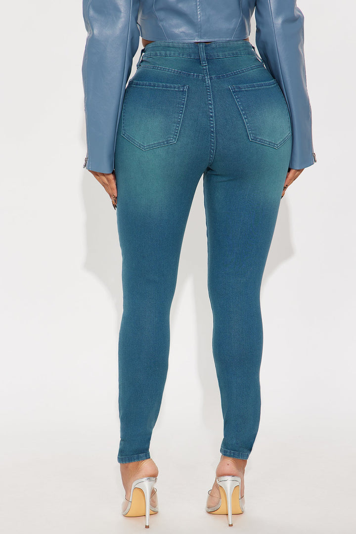 Available In Teal. | Skinny Jean | 5 Pocket | Coated | 11" Rise | 29" Inseam | Medium Stretch | 70%Cotton 28% Polyester 2% Spandex | Imported