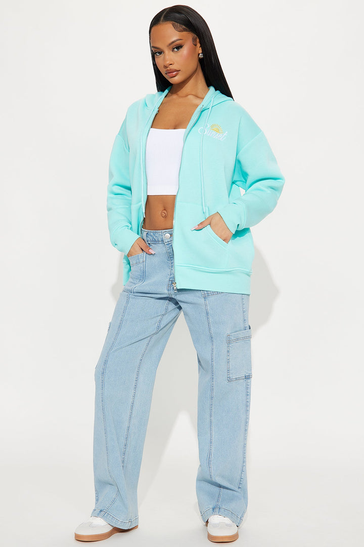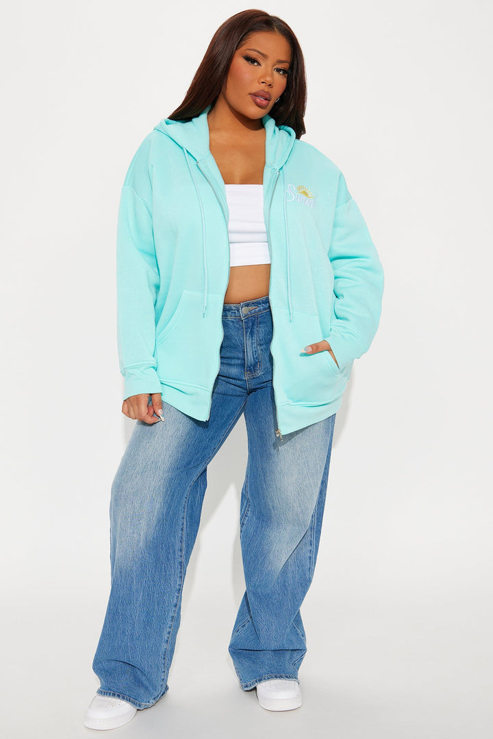 Summer Sunsets Zip Up Hoodie - Turquoise