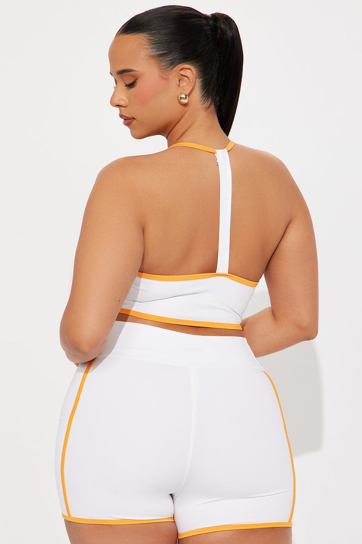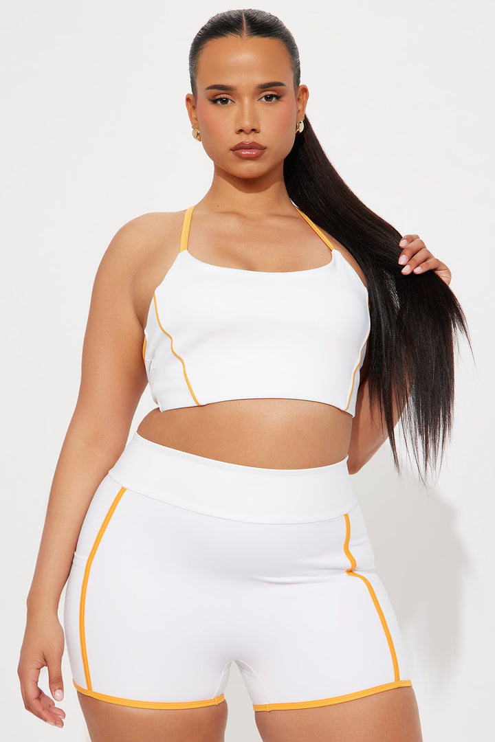 Available In Pink And White. | Sports Bra | Scoop Neck | Sleeveless | Elevate | Contrast Trim | High Impact | Stretch | Pair With "Sun Sweats Elevate Active Short" | Main Fabric: 73% Polyester 27% Spandex | Mesh: 82% Nylon 18% Spandex | Imported