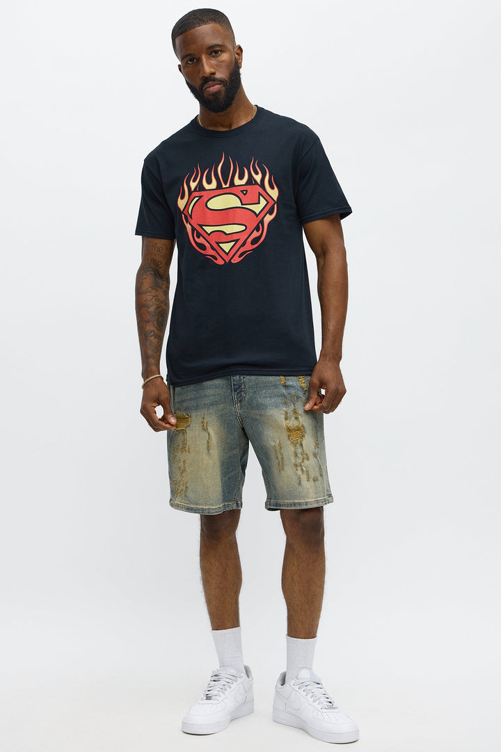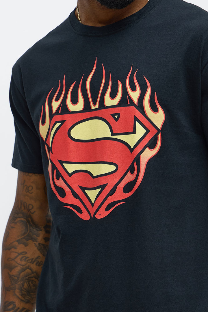 Superman Flames Logo Tee - Black