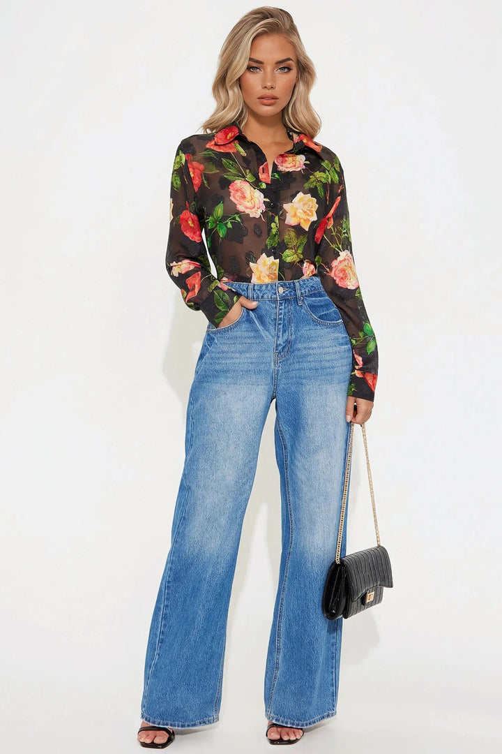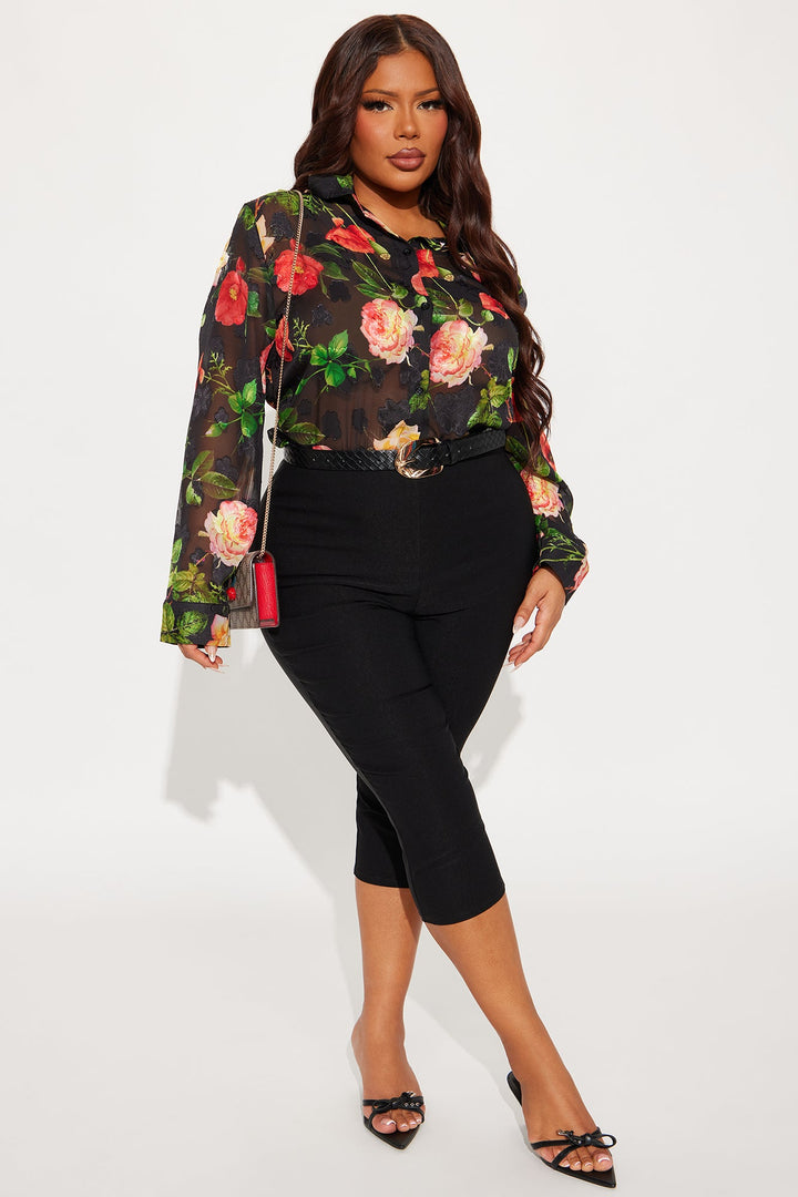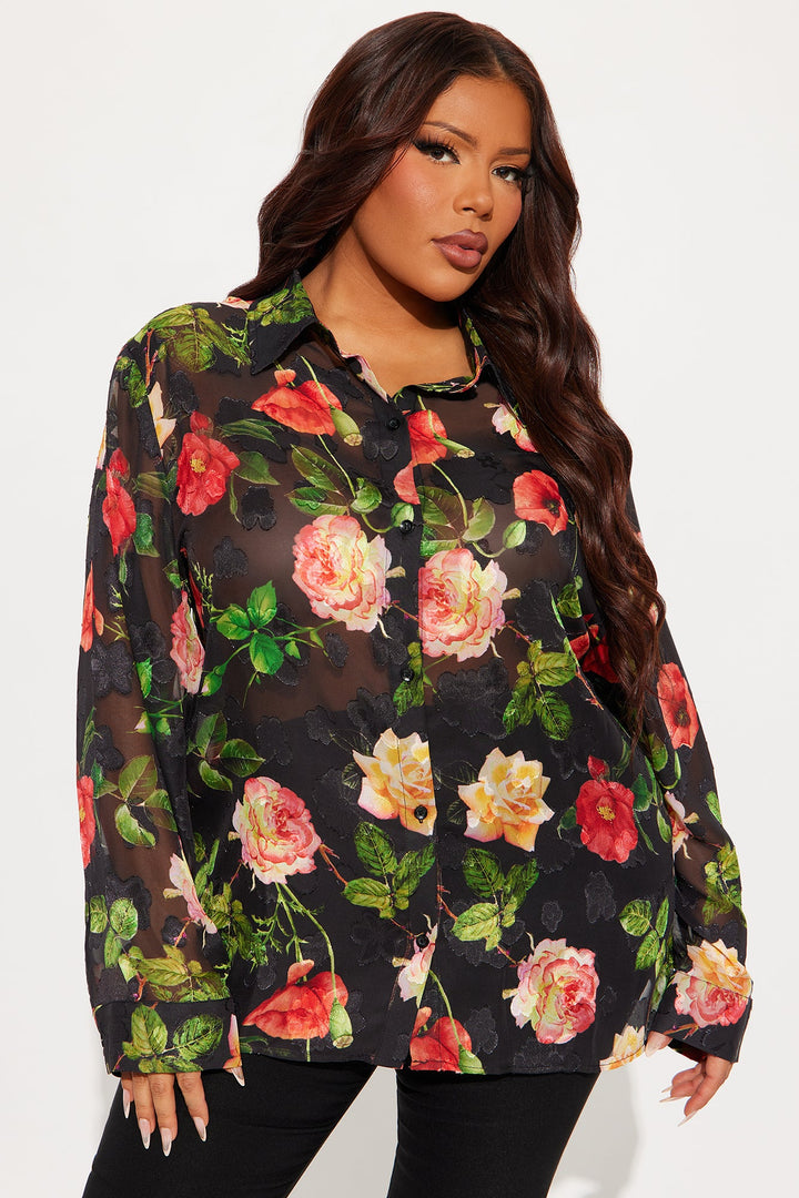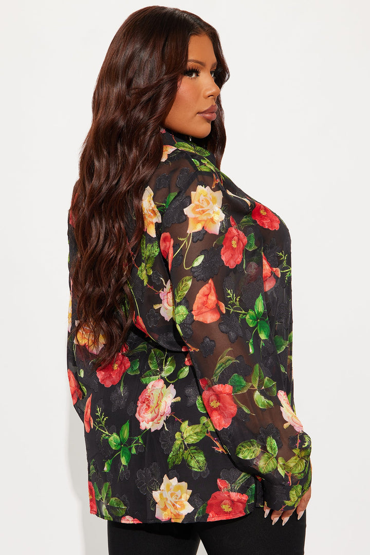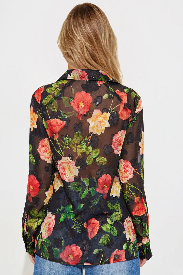 Surrounded By Beauty Floral Chiffon Shirt - Black/combo