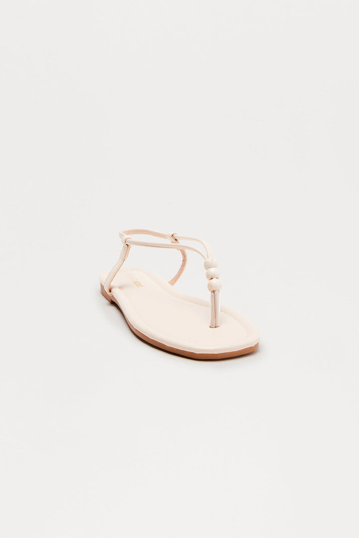 Available In Beige And Black. | Flat Sandals | Beaded Embellished Detail | Square Toe | Flat Heel | Imported