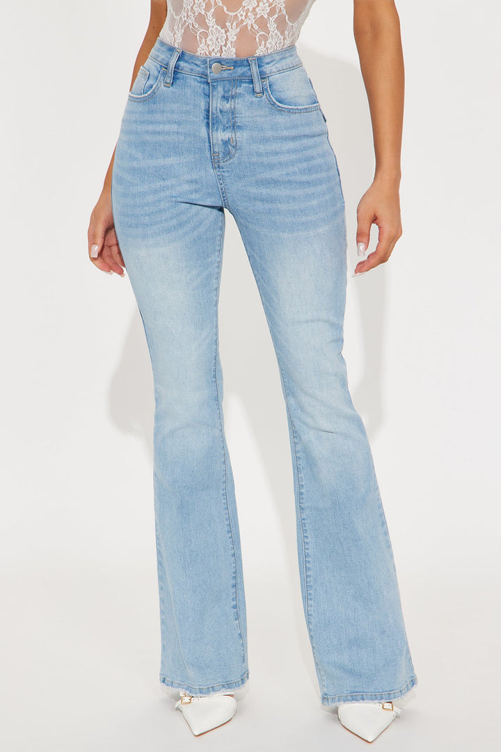 Sweet By Choice Lace Up Stretch Flare Jeans - Light Wash