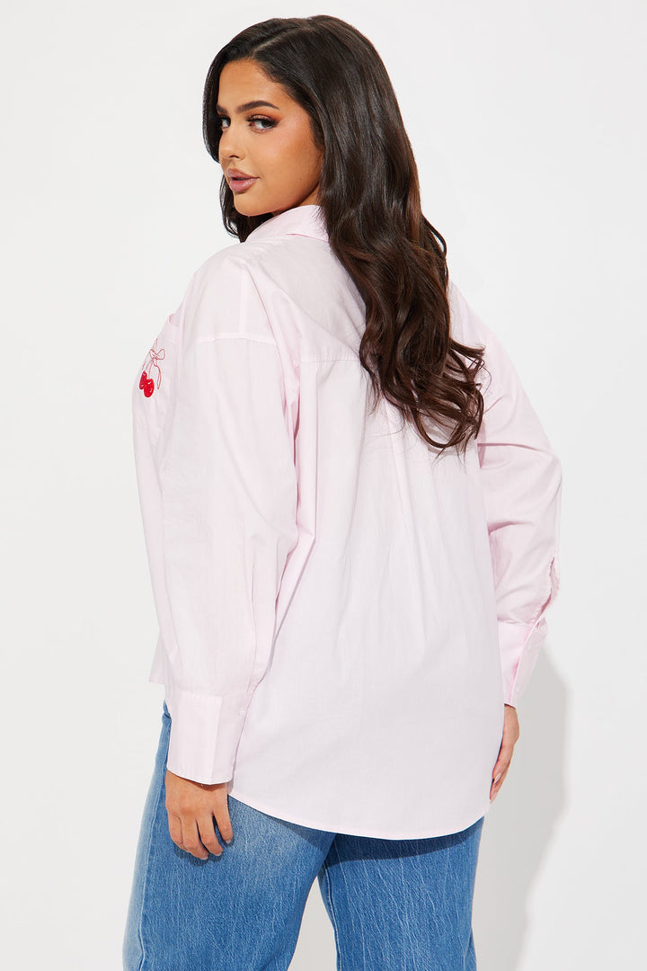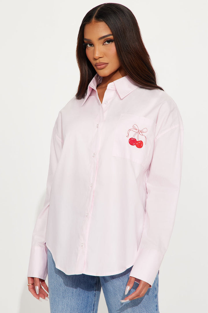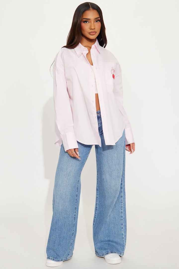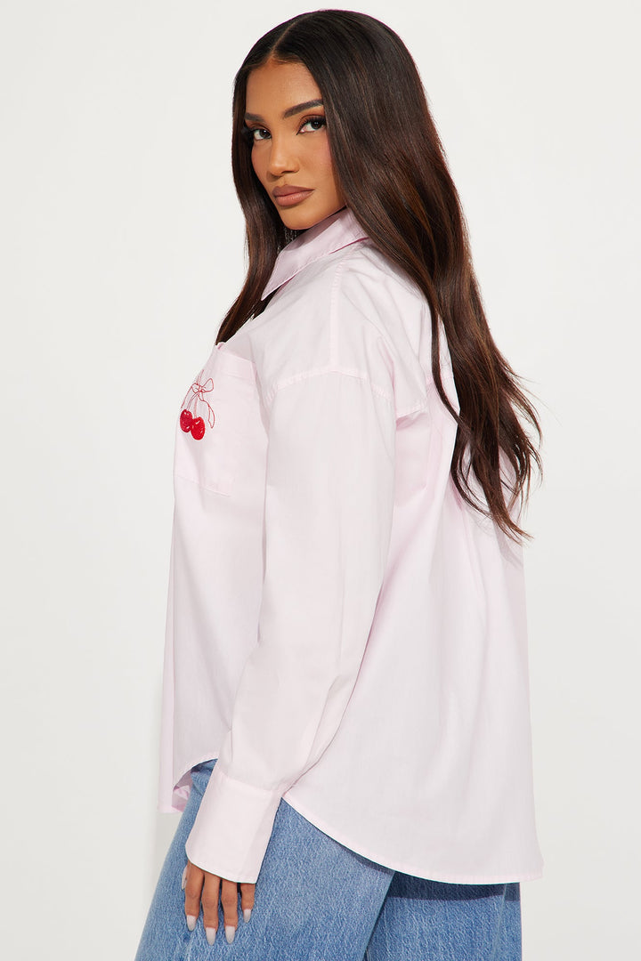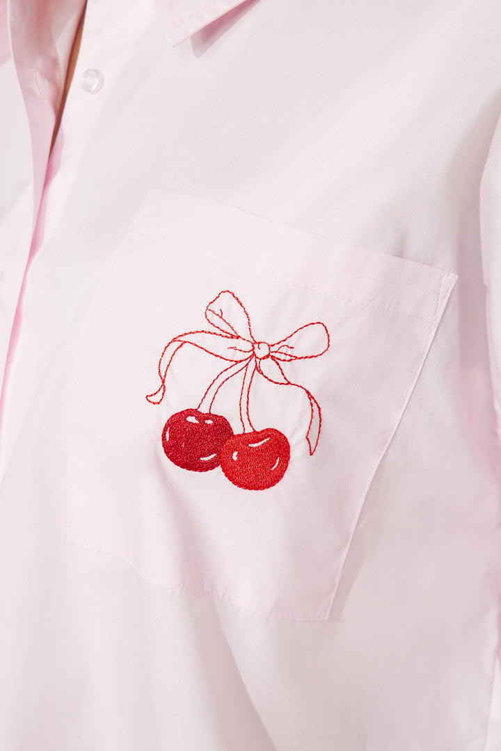 Available In Pink. | Poplin Shirt | Non Stretch | Front Pocket | Embroidered | 100% Cotton | Imported
