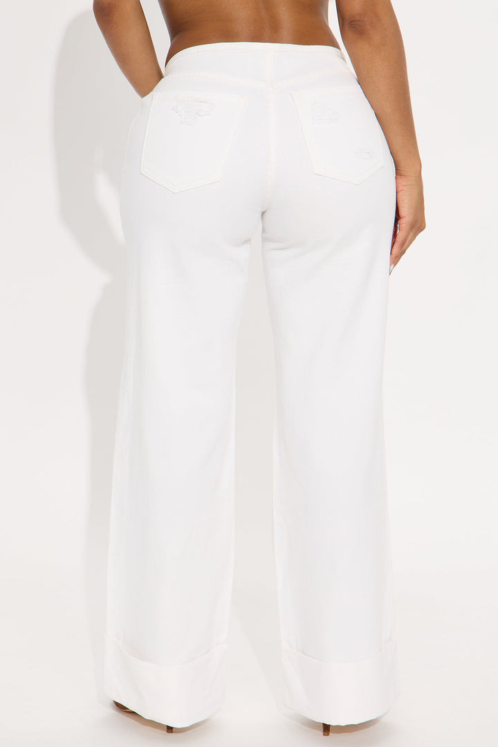 Swept Away Cuffed Wide Leg Jeans - White