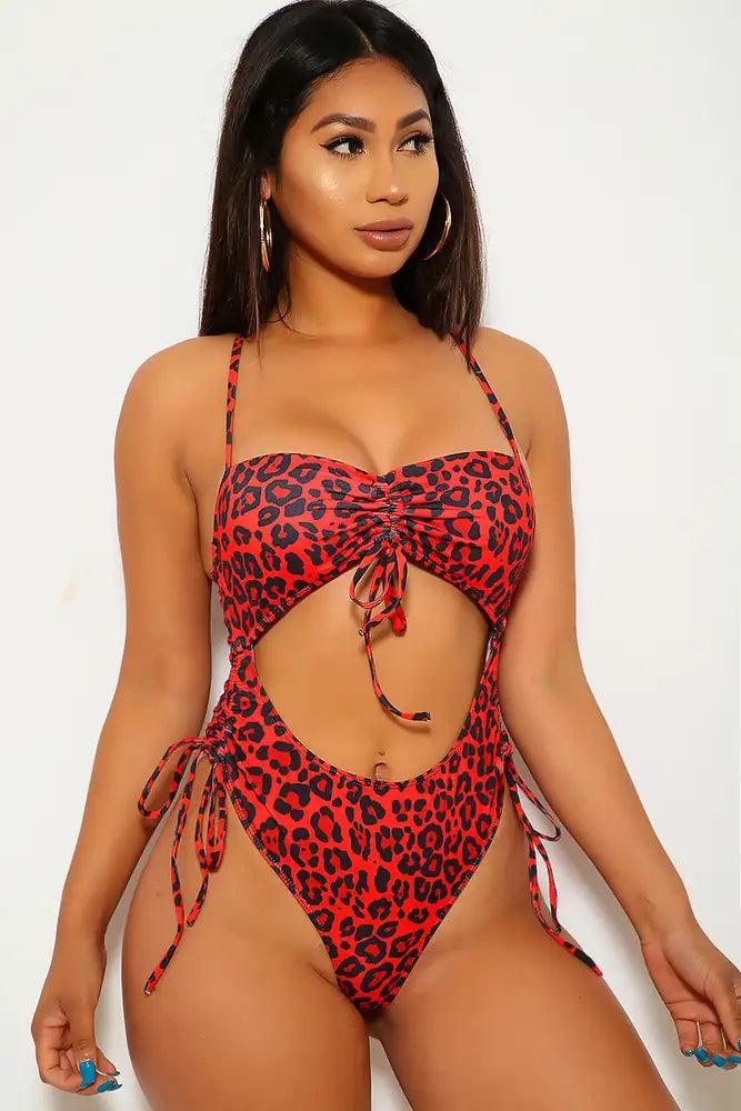 Red Leopard Cut Out One Piece Swimsuit