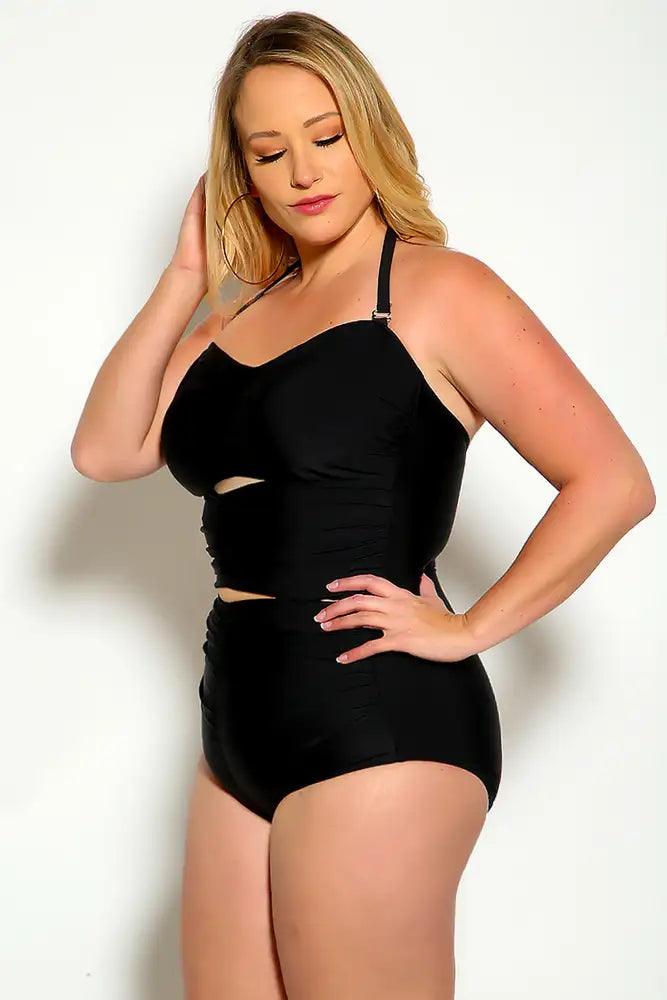 Sexy Black Cut Out Halter One Piece Swimsuit