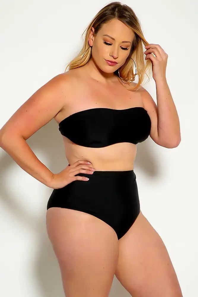 Sexy Black Bandeau High Waist Plus Size Swimsuit