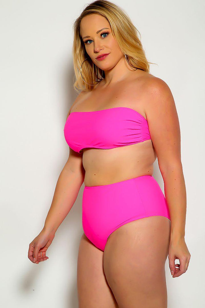 Sexy Fuchsia Bandeau High Waist Plus Size Swimsuit