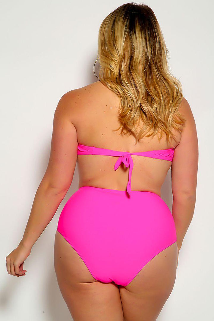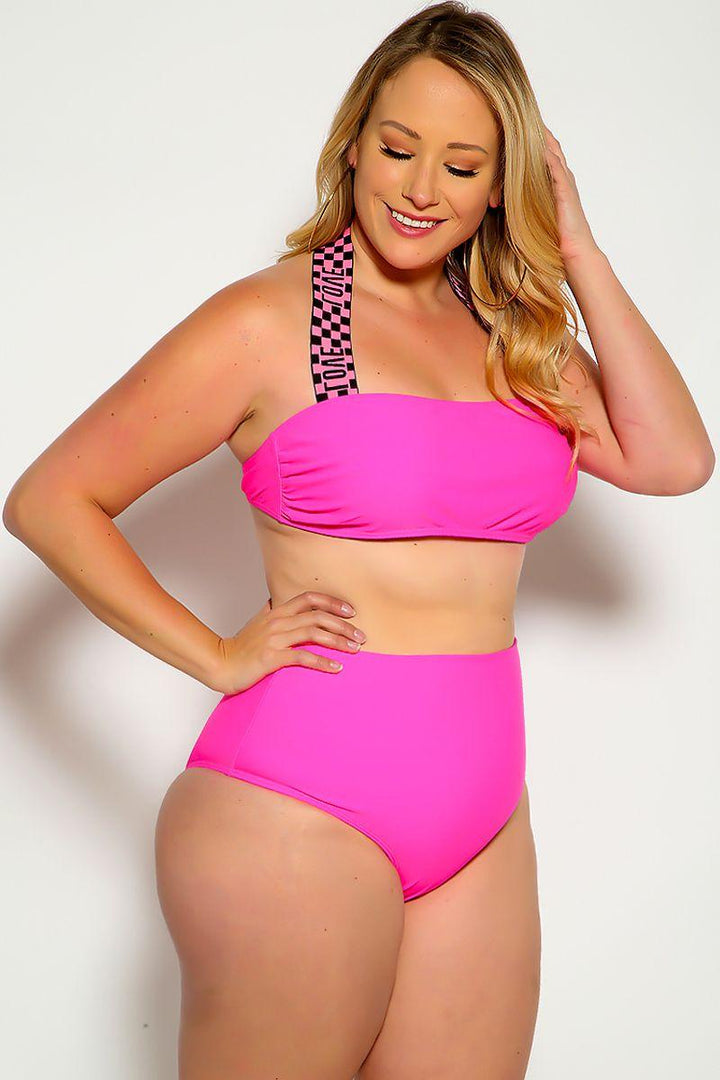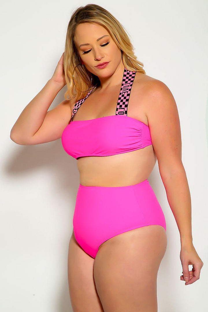 White Fuchsia Love Print Halter Bandeau High Waist Plus Size Swimsuit