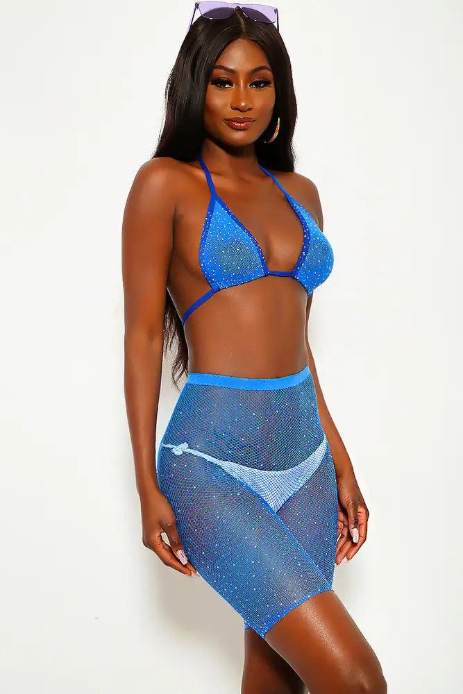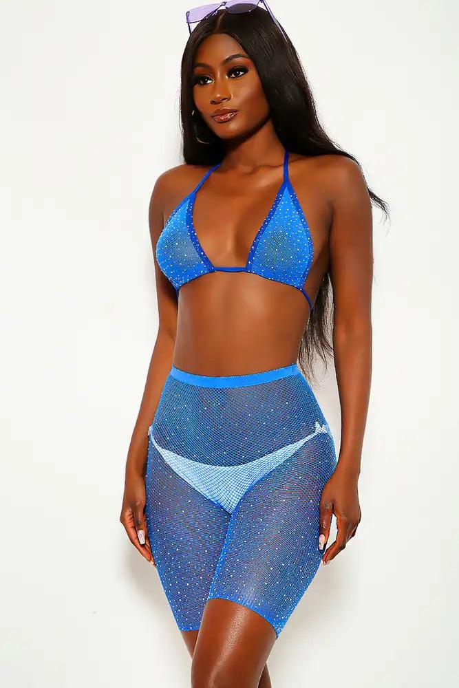 Sexy Blue Sparkle Rhinestone Two Piece Swimsuit