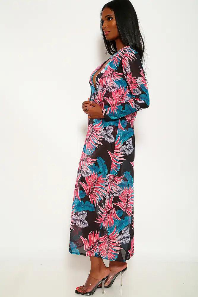 Rock this swimsuit set on your next vacay! Features: floral print, plunging neckline, wrap around tie closure, high cut, non-padded monokini followed by a sheer matching maxi kimono. 100% Polyester