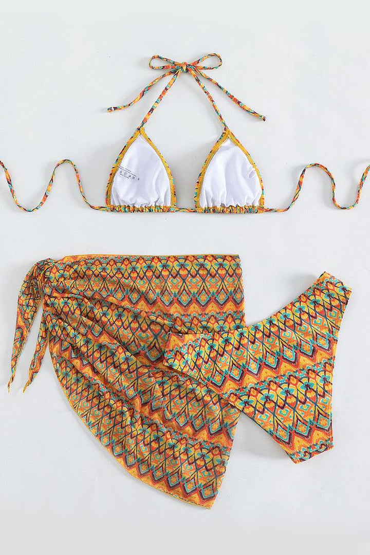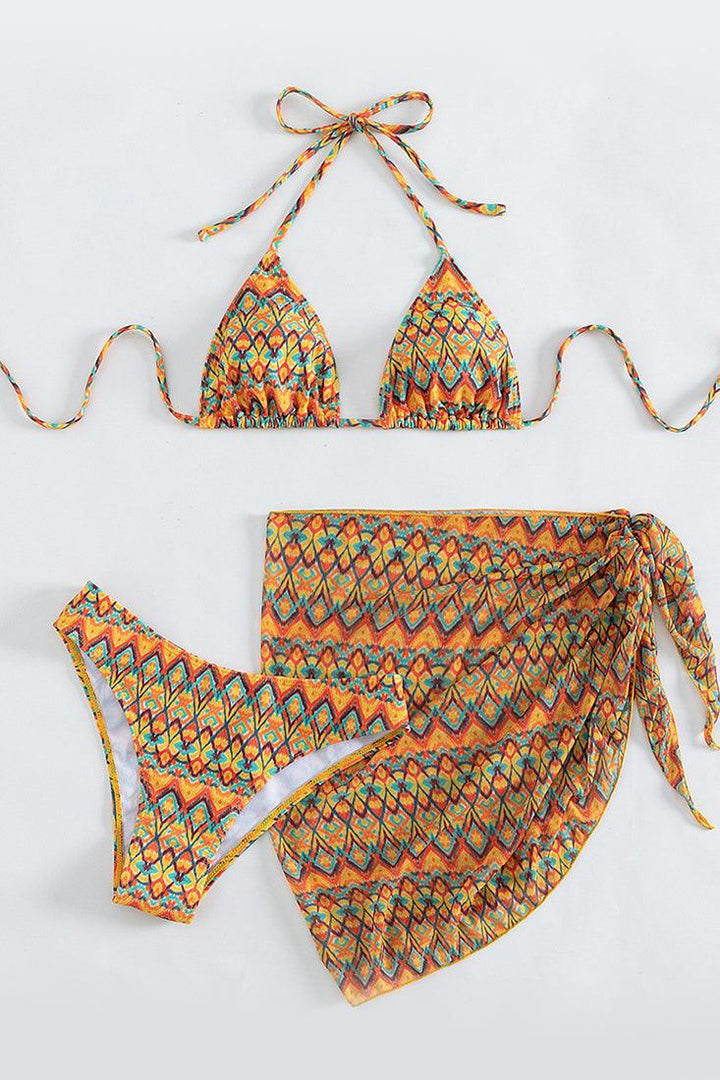 Multi Aztec Print Triangle Cheeky Cover-Up 3Pc Swimsuit Set Bikini