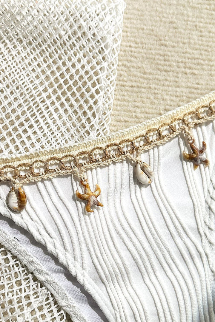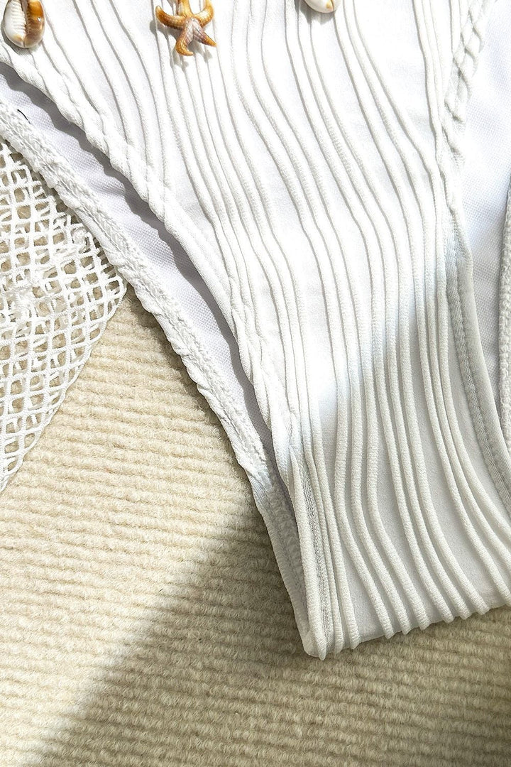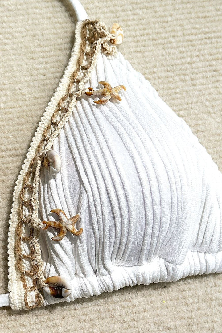 White Seashell Chandelier Triangle Cheeky Netted 3Pc Sexy Swimsuit Set