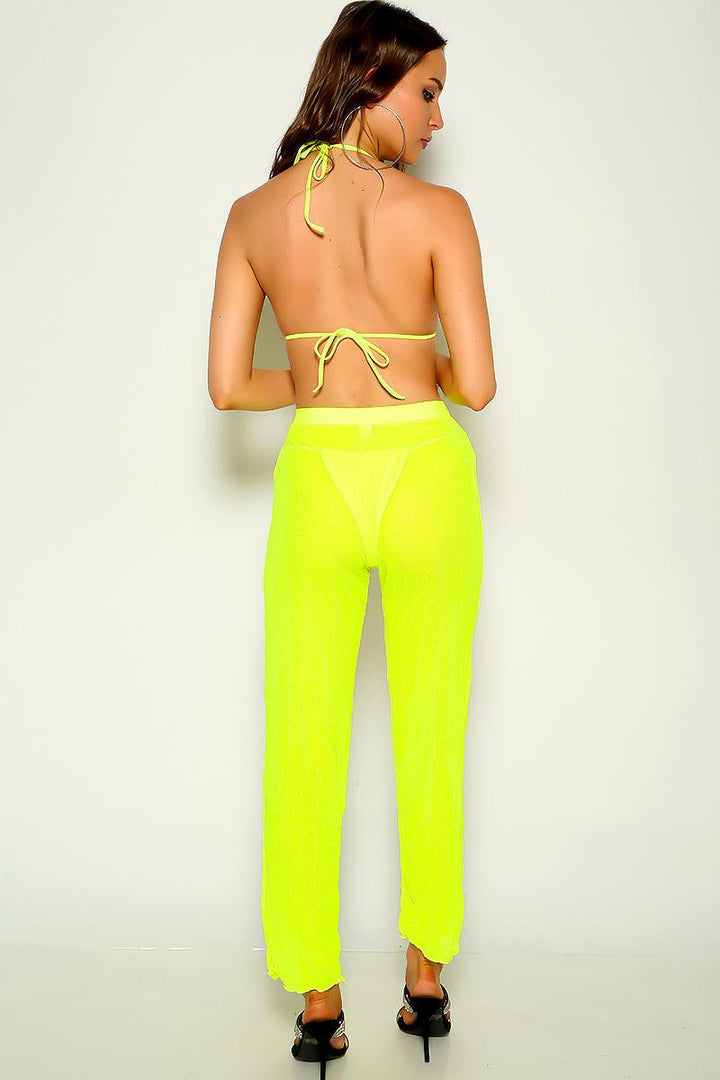 This sexy and stylish swimsuit is perfect for some summertime fun! Featuring; 3 piece, padded, removable padding, matching coverup pants, tie straps, mesh, halter, cheeky. 94% Polyester 6% Spandex