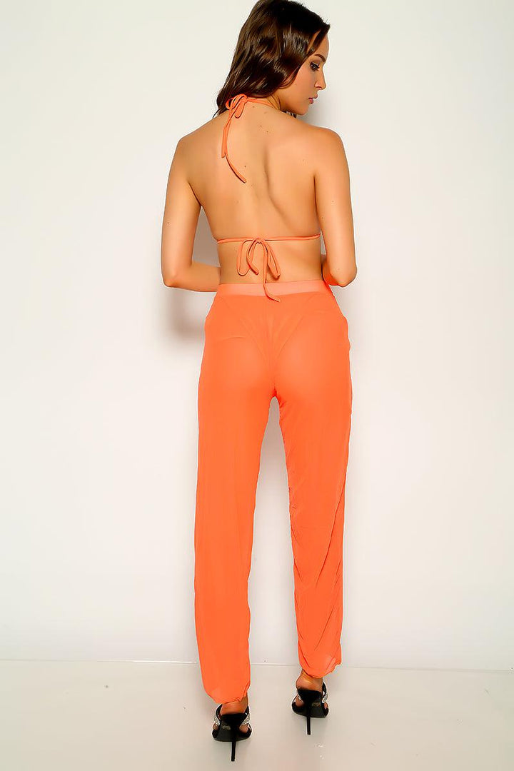 This sexy and stylish swimsuit is perfect for some summertime fun! Featuring; 3 piece, padded, removable padding, matching coverup pants, tie straps, mesh, halter, cheeky. 94% Polyester 6% Spandex