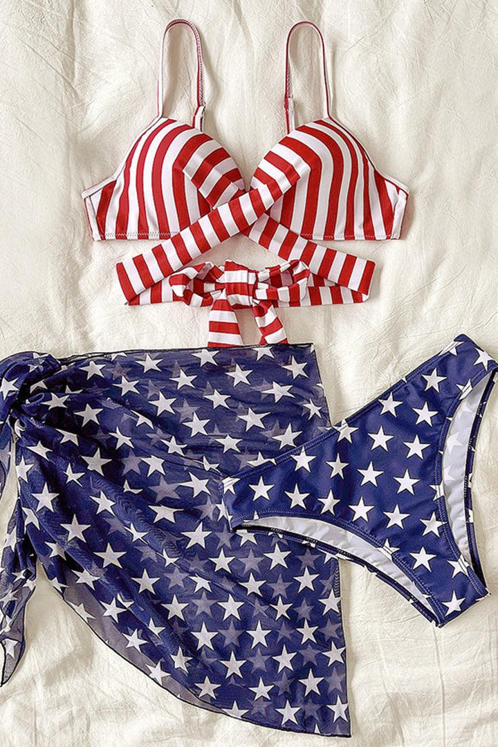 Sexy American Flag Bikini Red White Stripe Top With Blue Star Print Bottom
