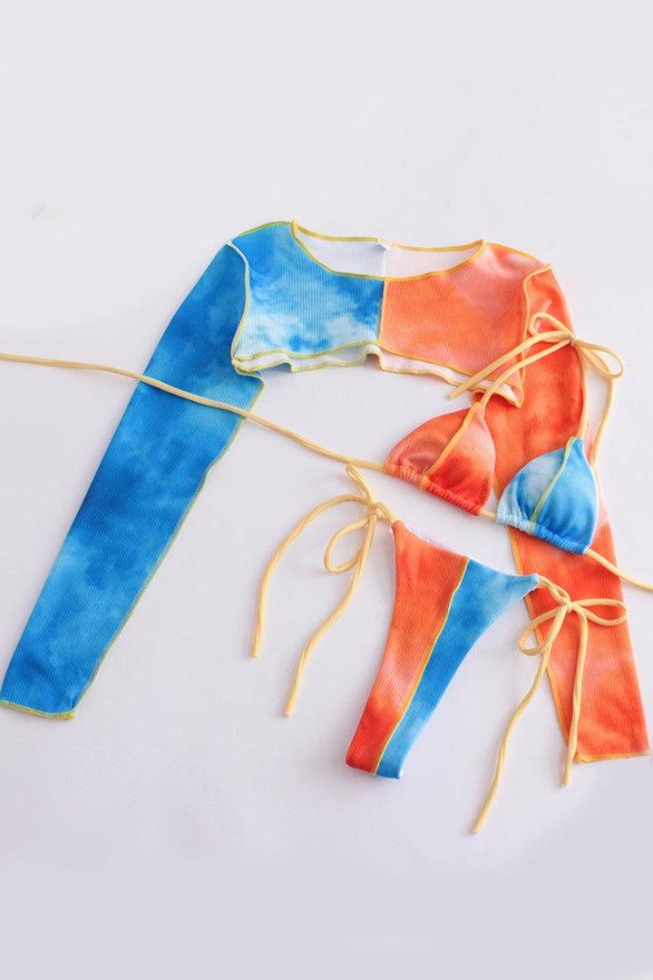 Sexy Orange Blue 3pc Tie Dye Cheeky Bikini Set