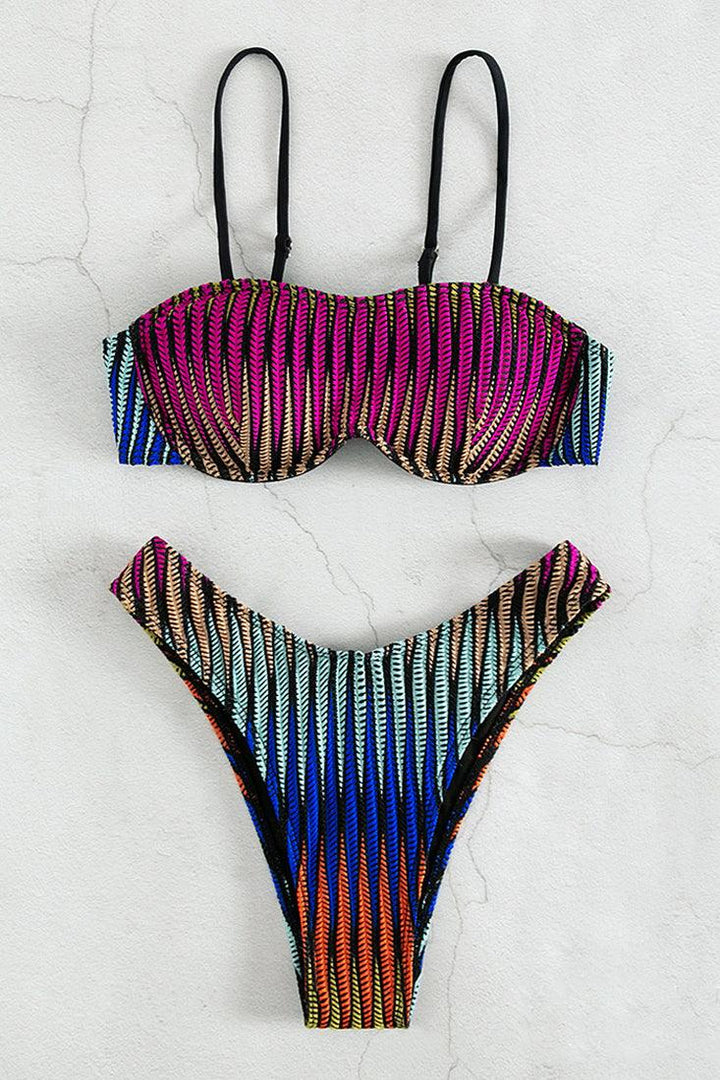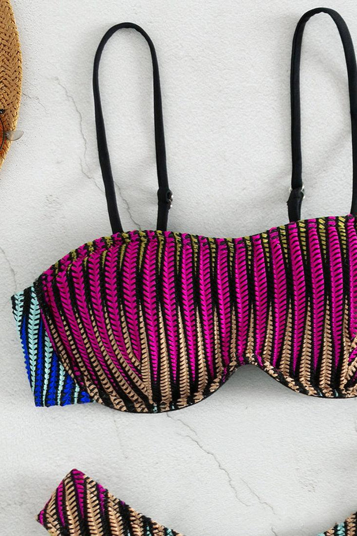 Wine Crochet Textured Wired Cheeky Sexy 2Pc Swimsuit Set