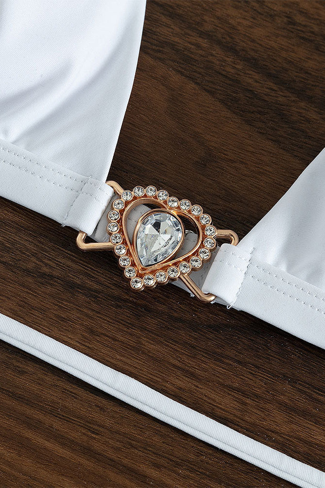White Heart Rhinestone Strappy Tied Sexy 2Pc Swimsuit Set Bikini