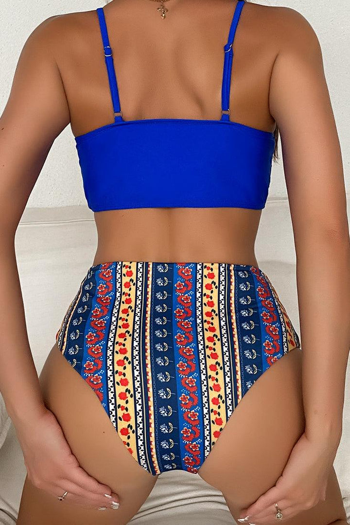 Royal Blue Multi Printed Cheeky Sexy Two Piece Swimsuit