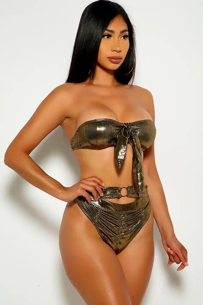 Bronze Ruched Strapless two Piece swimsuit