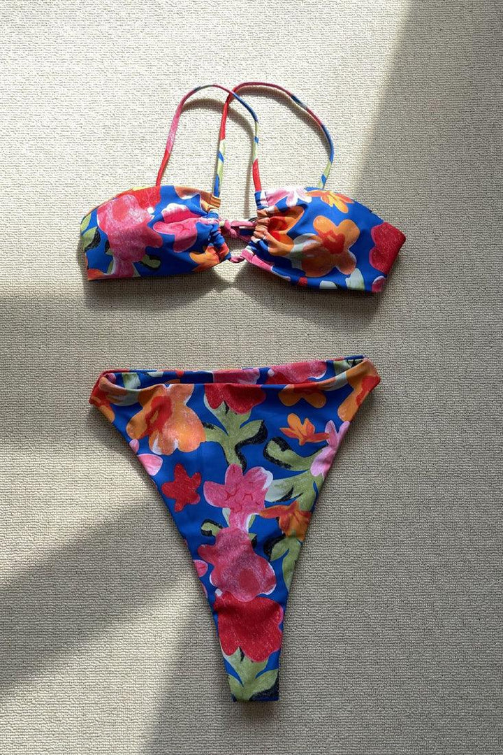 Lay out and take in some sun in this sexy swimsuit! Featuring; two piece, triangle halter top, textured, with matching cheeky panties. Followed by a sexy wear