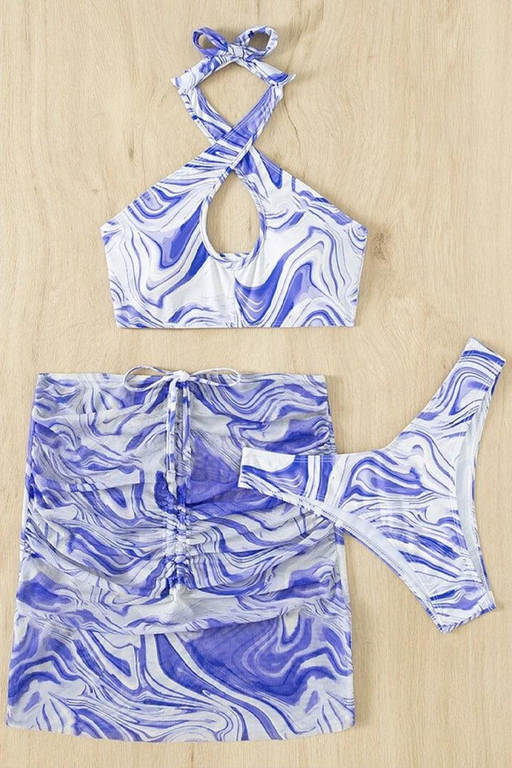 This Sexy Blue white Swirl 3pc Bikini Set is perfect for a beach getaway. Featuring a classic three-piece design, it offers comfort and support while still being fashionable. Classic blue and white print completes this timeless look.