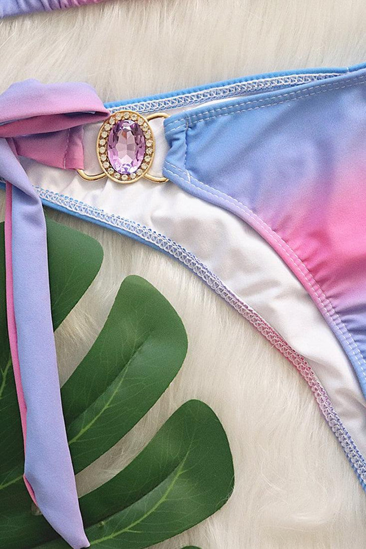 Purple Rhinestone Gem Strappy Halter 2 Pc Swimsuit