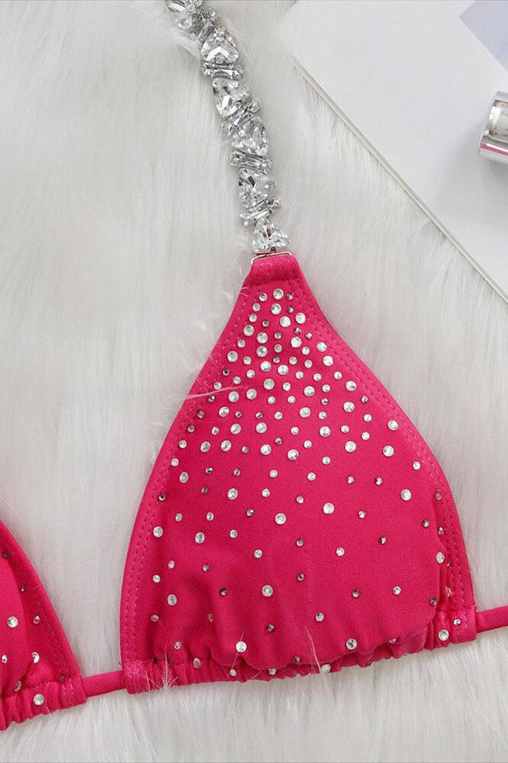 Fuchsia Rhinestone Accent Sexy Two Piece Swimsuit