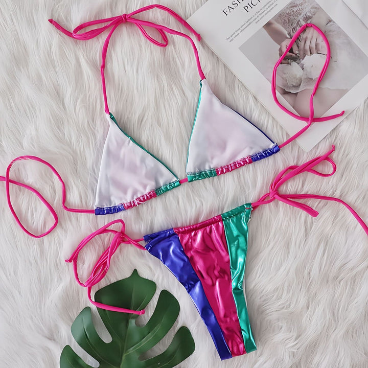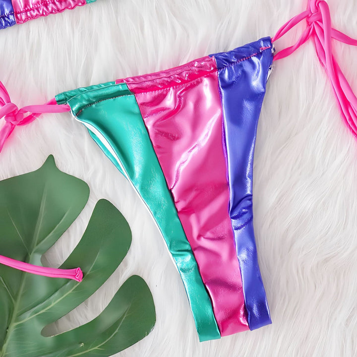 Fuchsia Metallic Color Block Micro Triangle Cheeky 2Pc Sexy Swimsuit Set