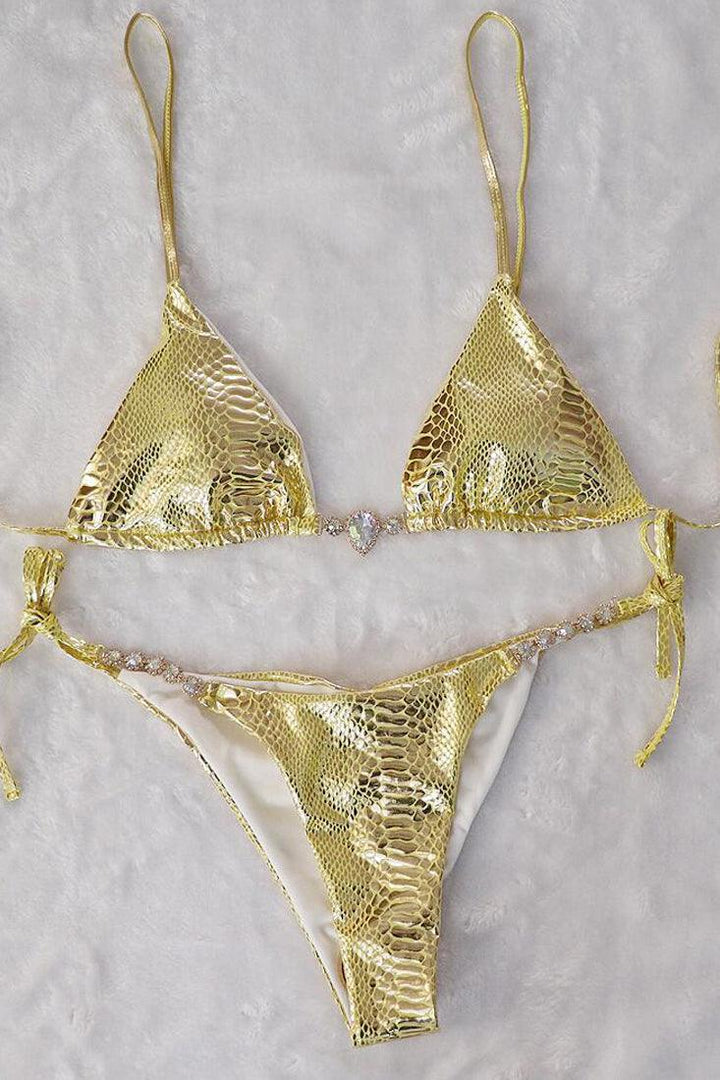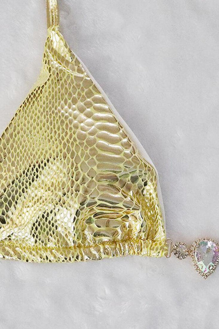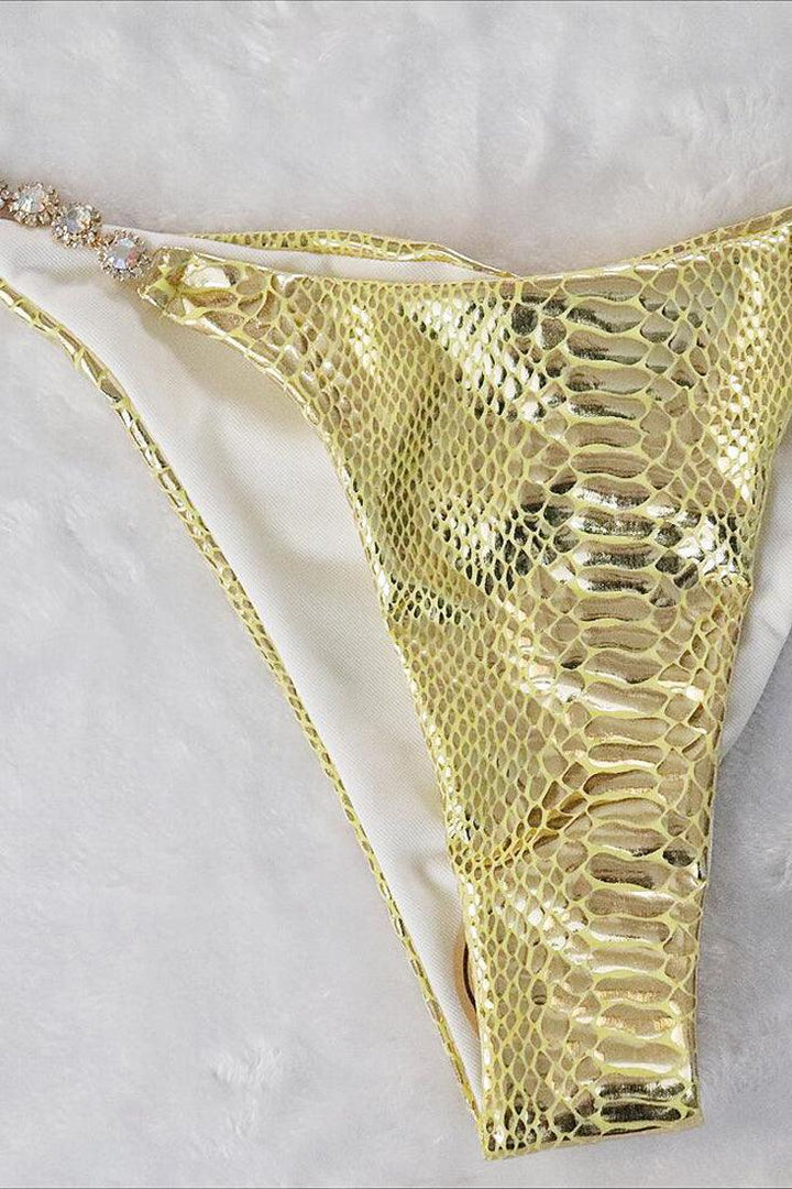 Gold Snake Rhinestone Strappy Halter Cheeky 2 Pc Swimsuit