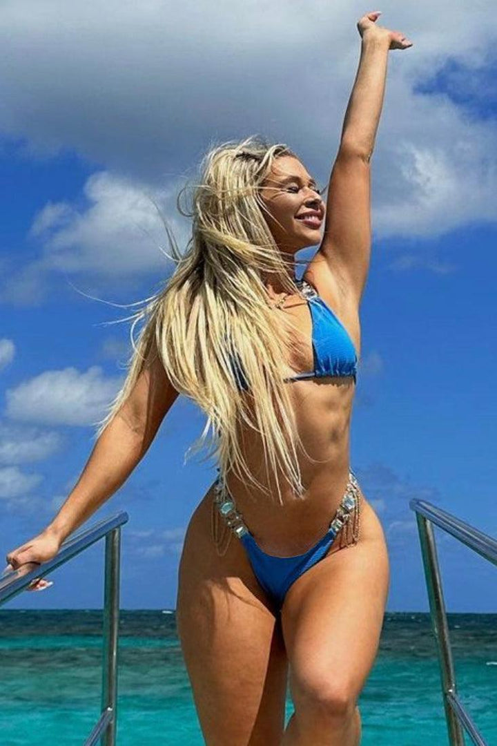 Make heads turn in this sexy swimsuit! Featuring; sleeveless, halter, strappy closure, triangle top, removable push up pads, ruched bikini bottoms, cheeky, rhinestone gem accent, followed by a fitted wear. Stretch Fit.