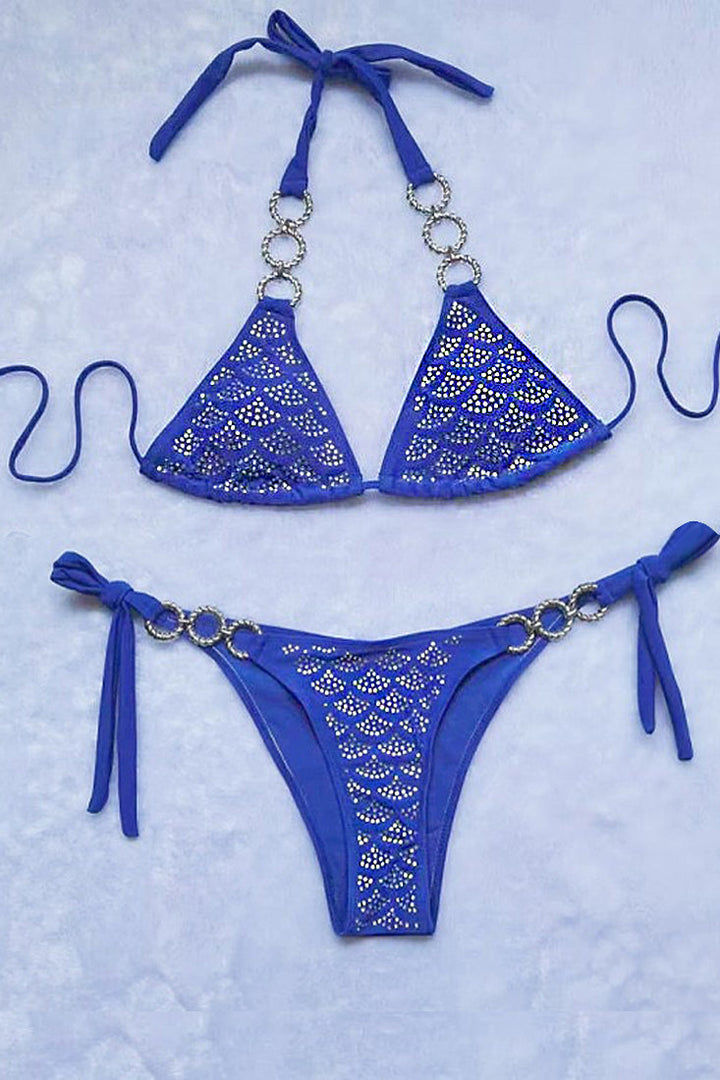 Royal Blue Rhinestone Covered O-Ring Cheeky 2Pc Sexy Swimsuit Bikini