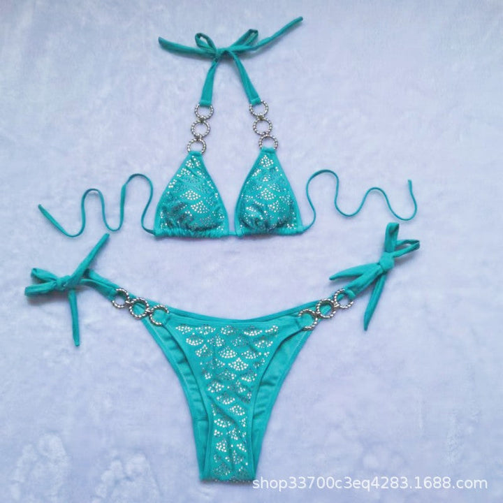 Mint Rhinestone Covered O-Ring Cheeky 2Pc Sexy Swimsuit Bikini