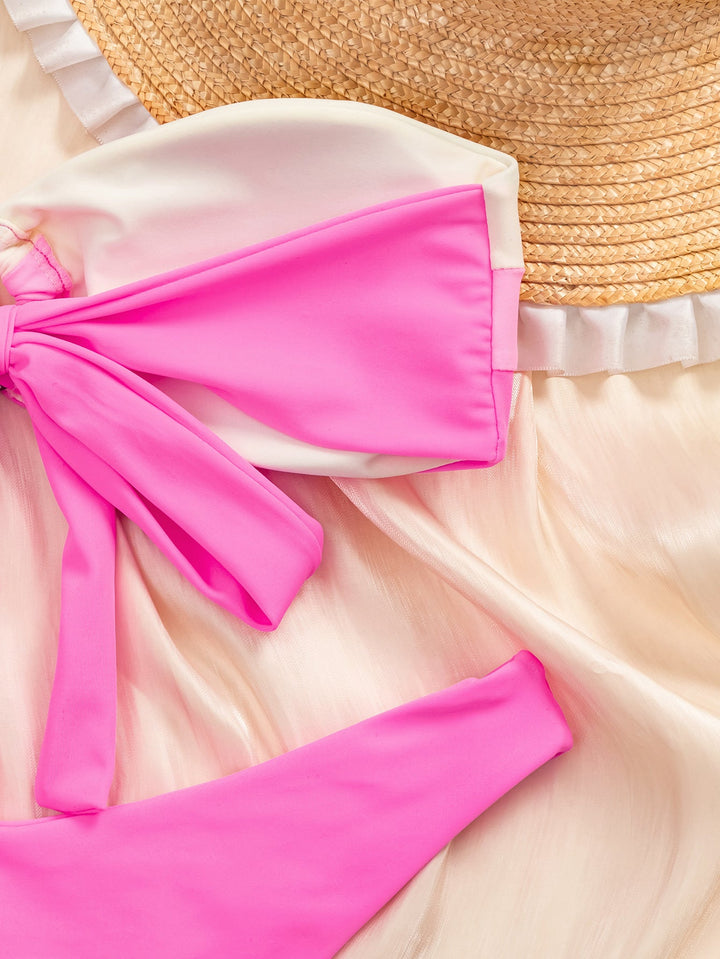 Turn heads at the beach or pool with this playful Pink White O-Ring Bandeau 2-piece swimsuit set. The cheeky cut and stylish O-ring detail add a flirty touch, while the bandeau top offers a sleek, strap-free look perfect for sunbathing. Embrace fun and confidence in this vibrant bikini that’s designed to make your summer moments unforgettable.