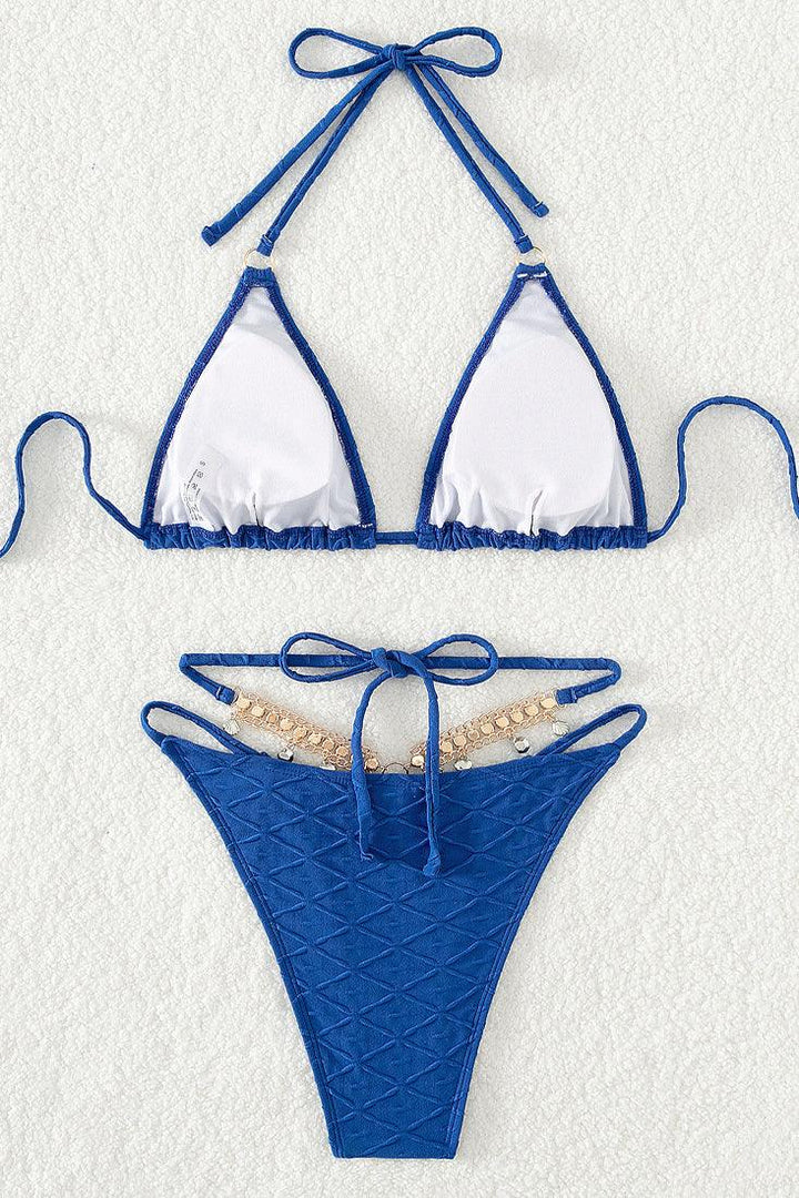 Blue Rhinestone Star Fish Strappy Triangle Cheeky 2Pc Sexy Swimsuit Set Bikini