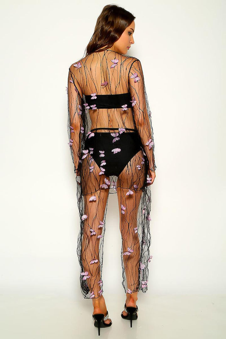 This sexy and stylish swimsuit is perfect for some summertime fun! Featuring; 3 piece, padded, removable padding, matching coverup top, matching coverup skirt, butterfly print, mesh, cheeky. 94% Polyester 6% Spandex