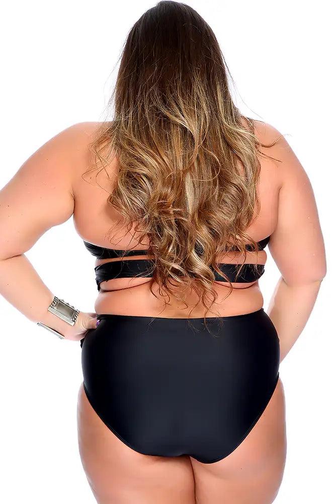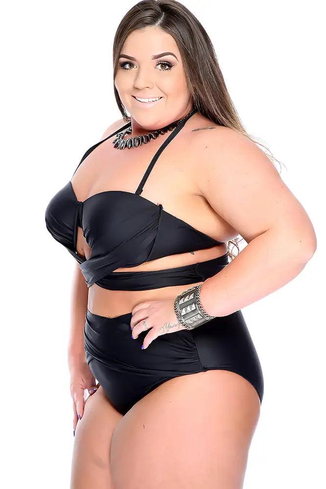 Sexy Black Padded Strappy Halter High Waist Cut Out Plus Size Swimsuit