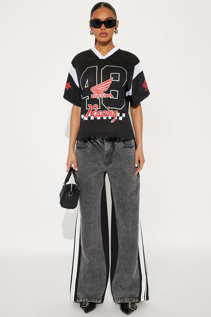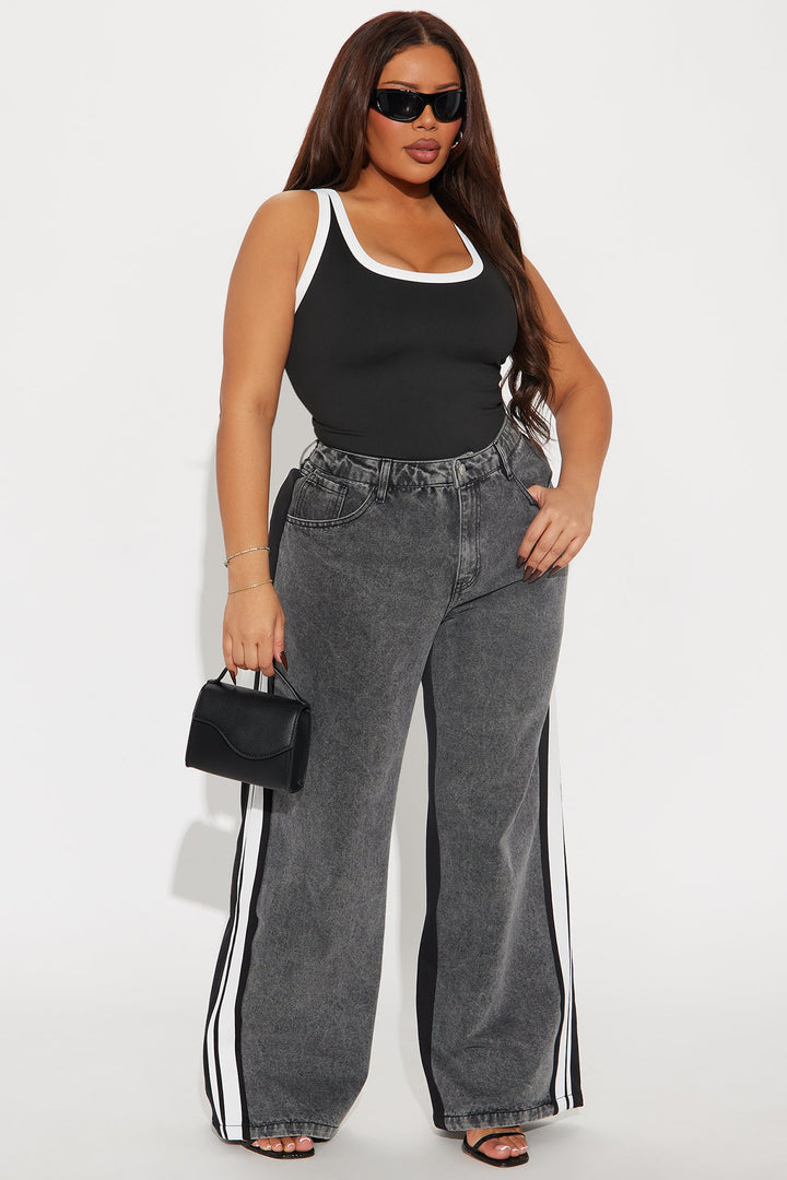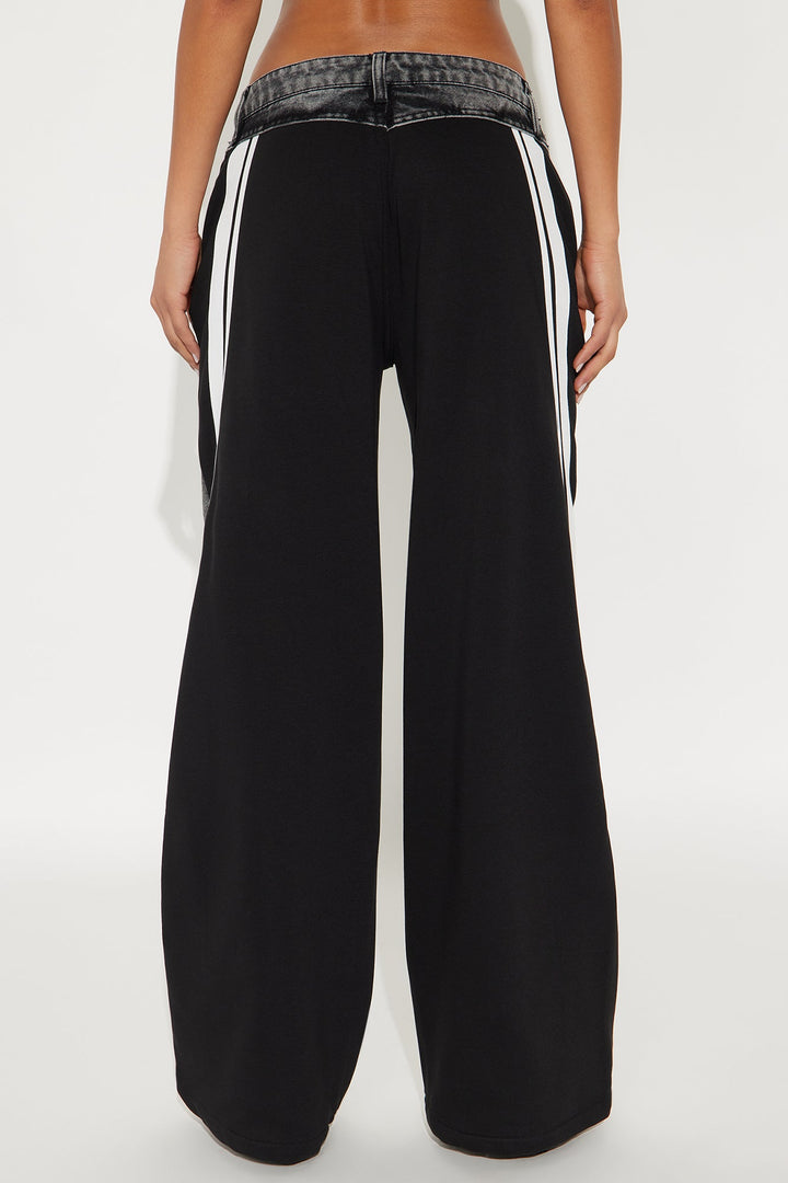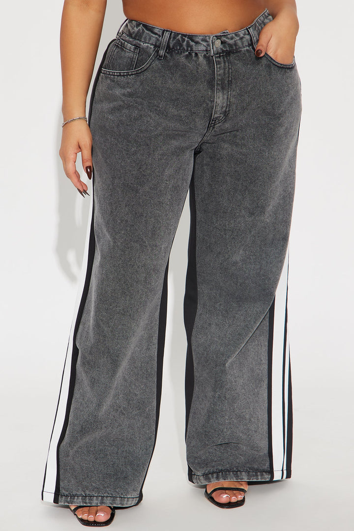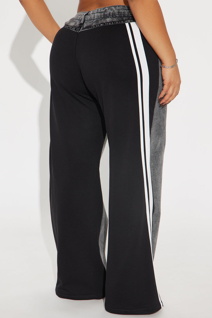 Switch It Up Knit Mixed Wide Leg Jeans - BlackWash
