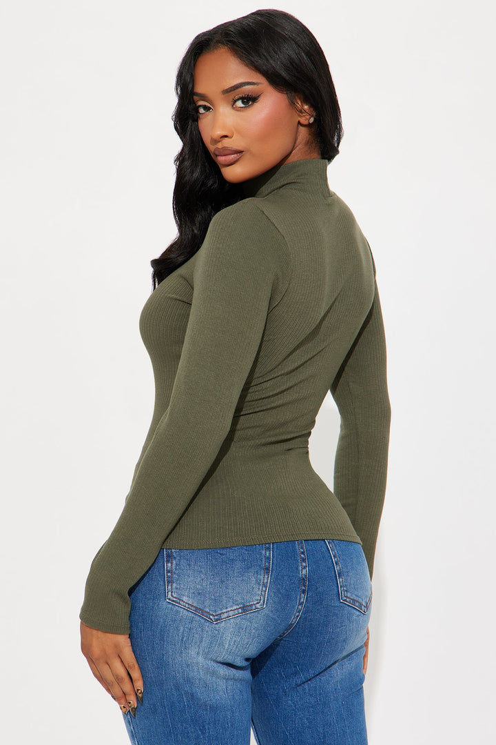 Sydney Mock Neck Ribbed Long Sleeve Top - Olive