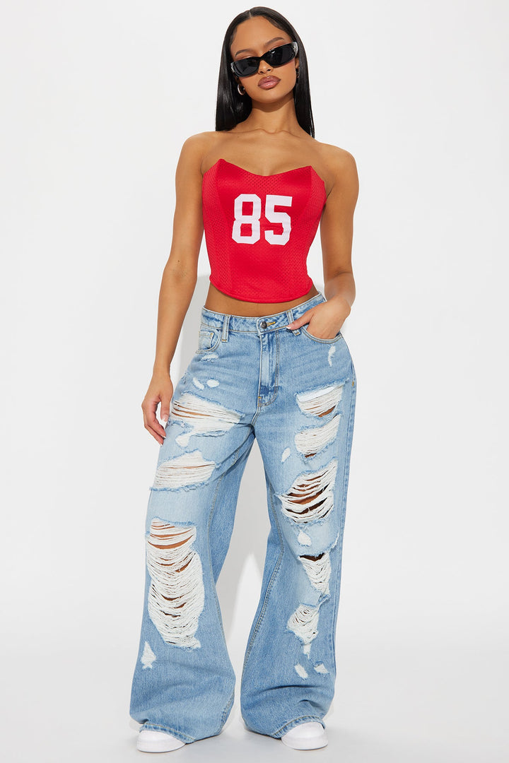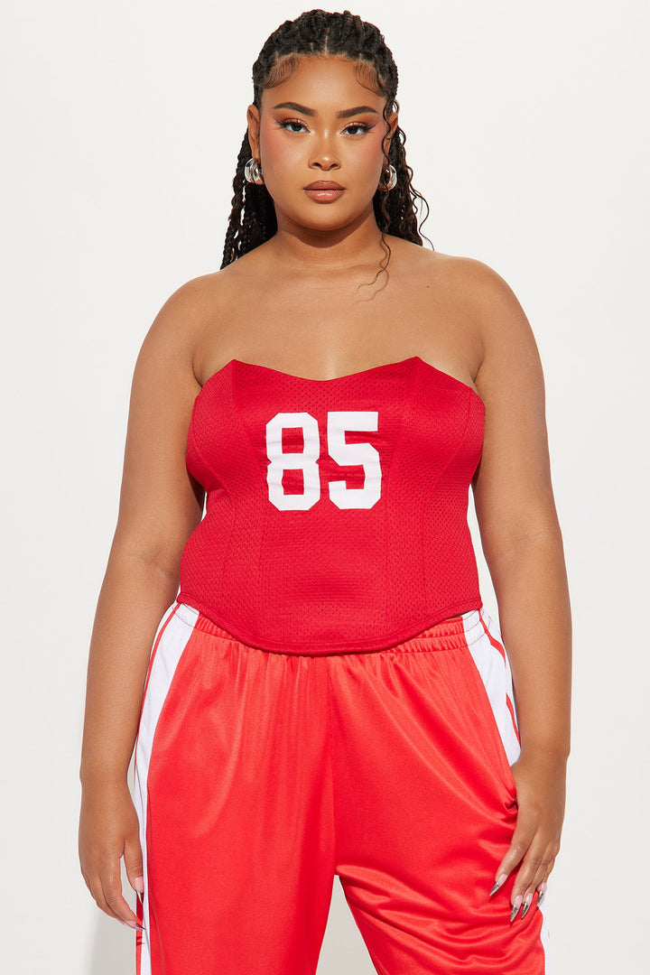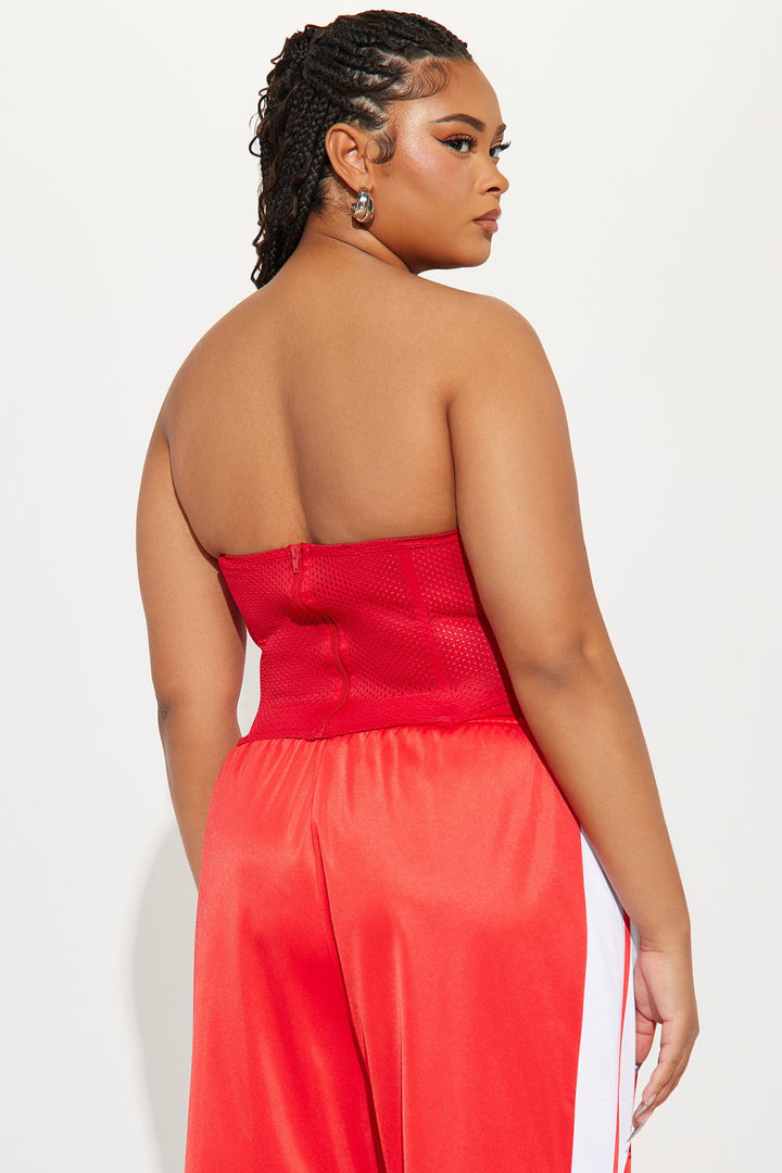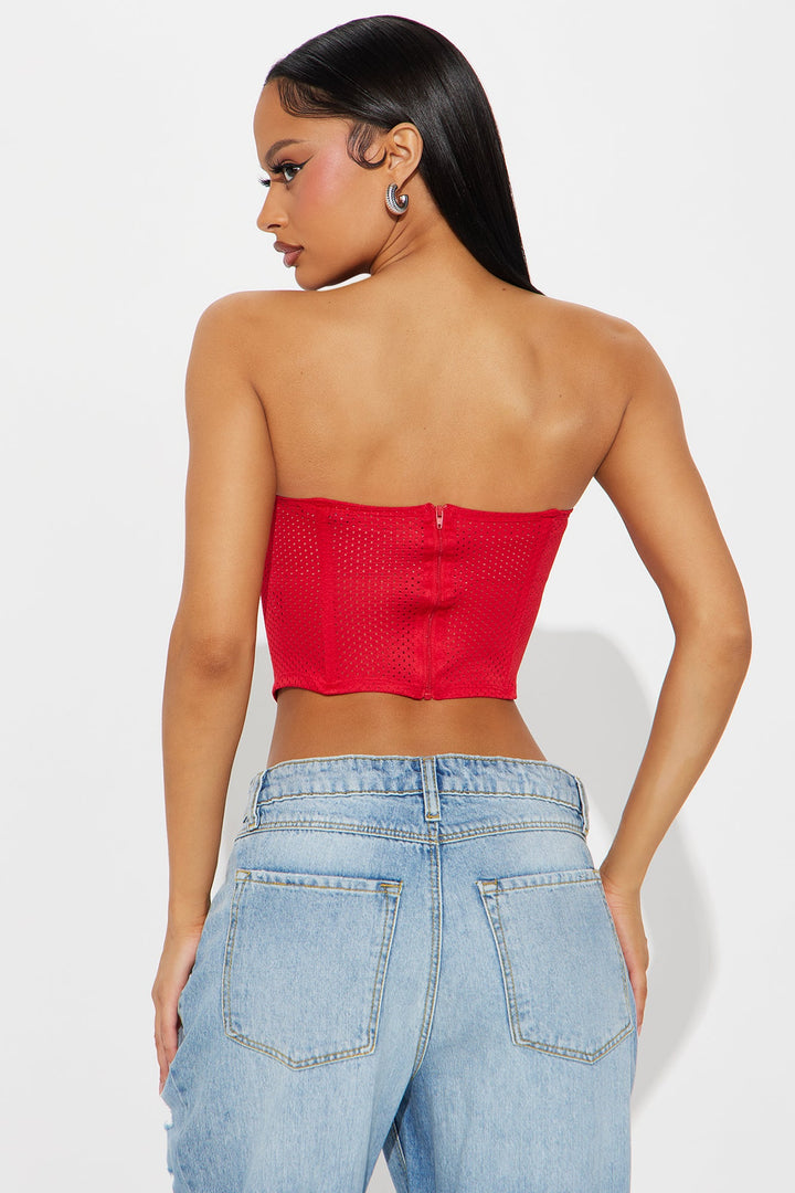 Available In Red. | Sweatheart Neckline | Strapless | Front Screen | Boning | Back Zipper Closure | Stretch | Shell/Lining: 100% Polyester | Imported