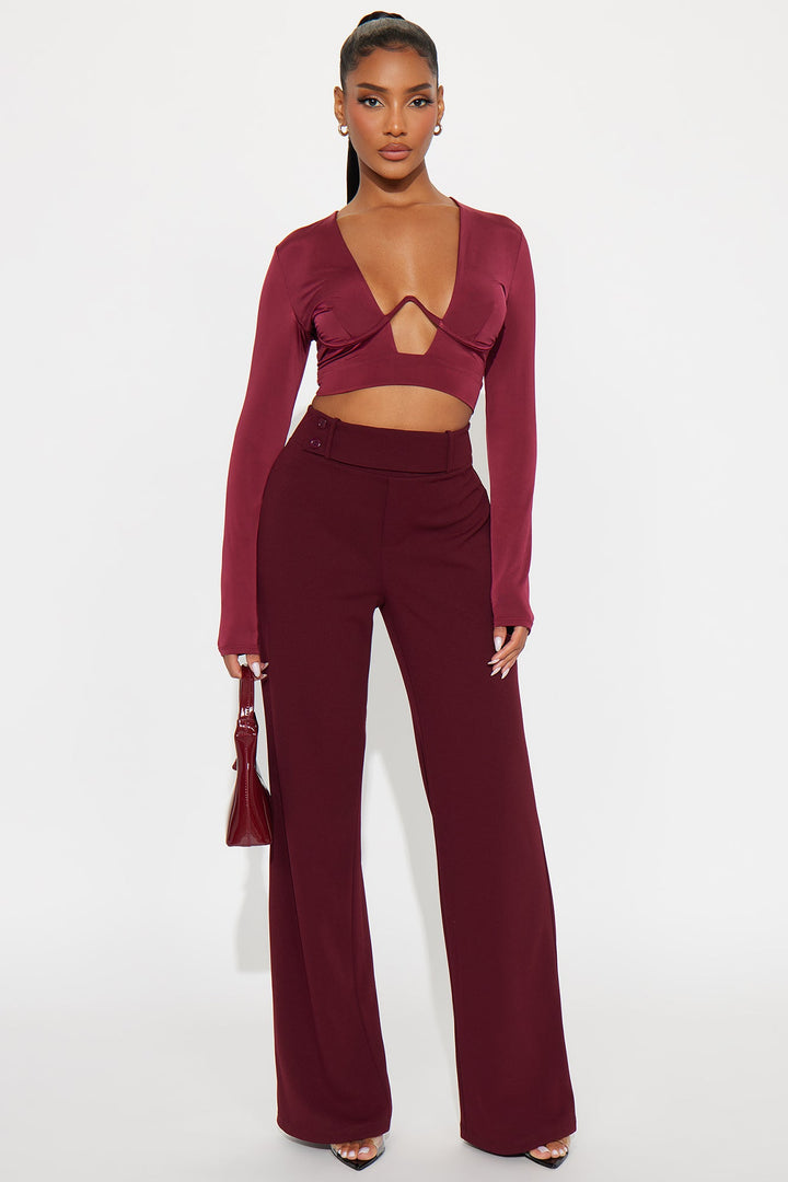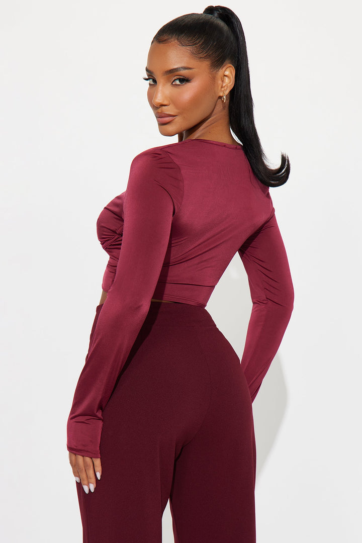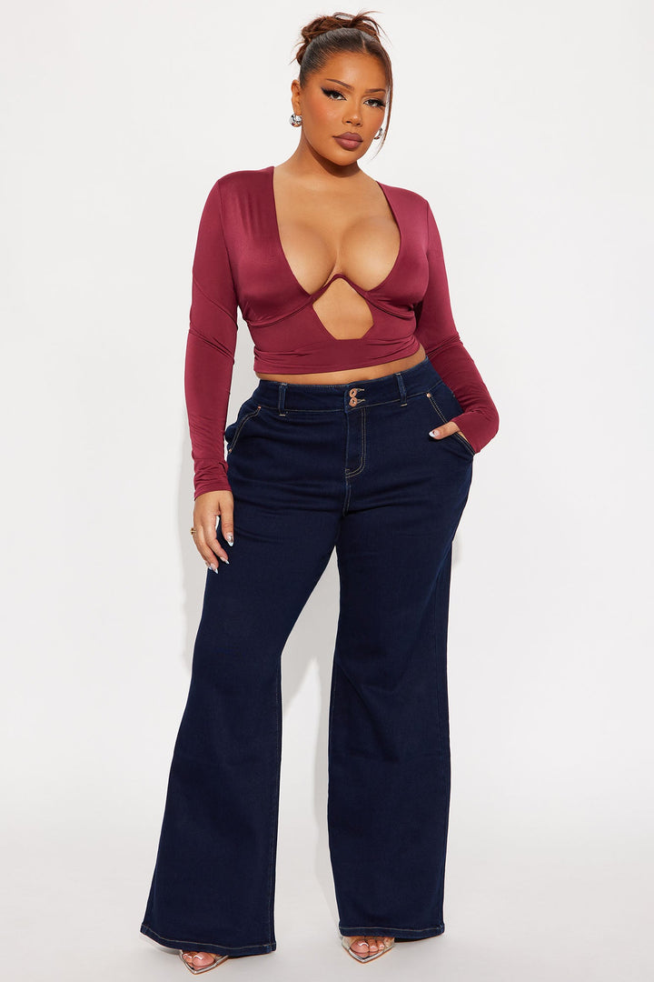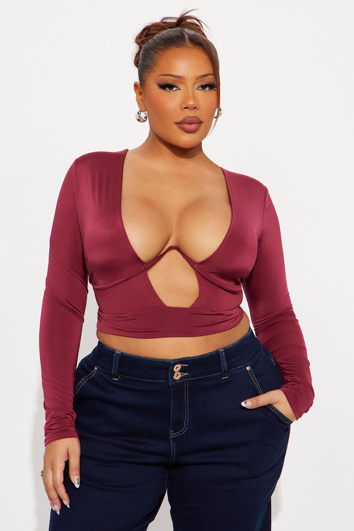 Available In Black And Burgundy. | Top | V-Neck | Long Sleeve | Underwire | Cut Out | Stretch | Self: 95% Polyester 5% Spandex | Imported