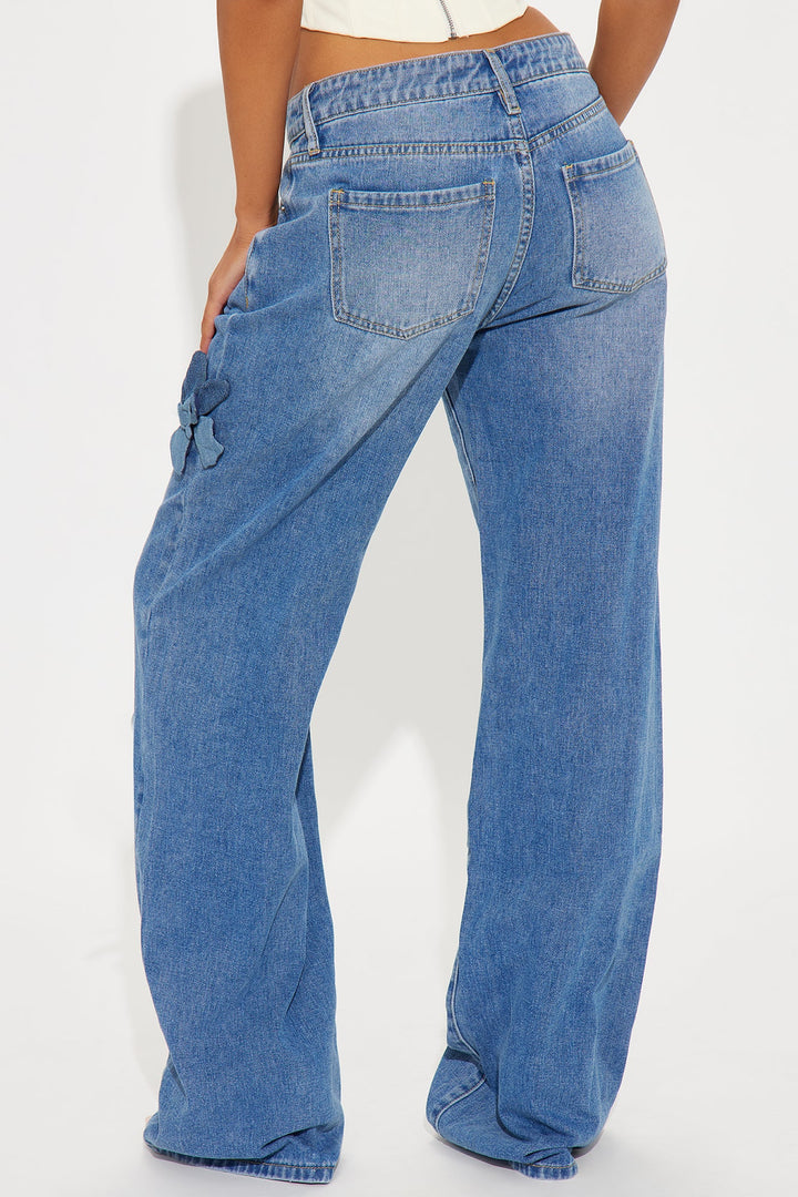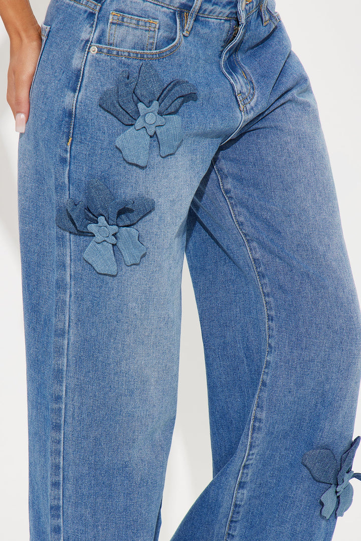 Tall Floria Baggy Flower Applique Jeans - Medium Wash