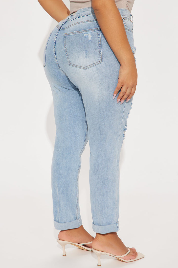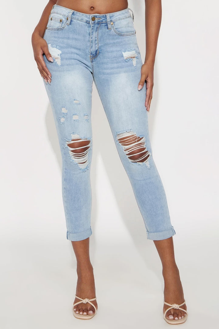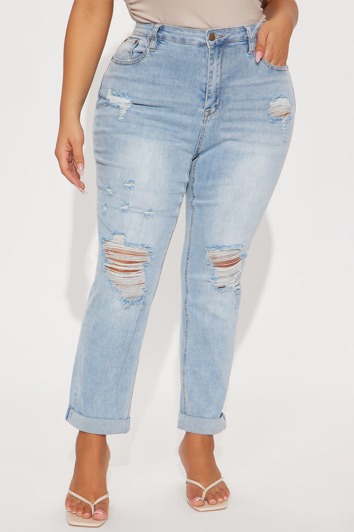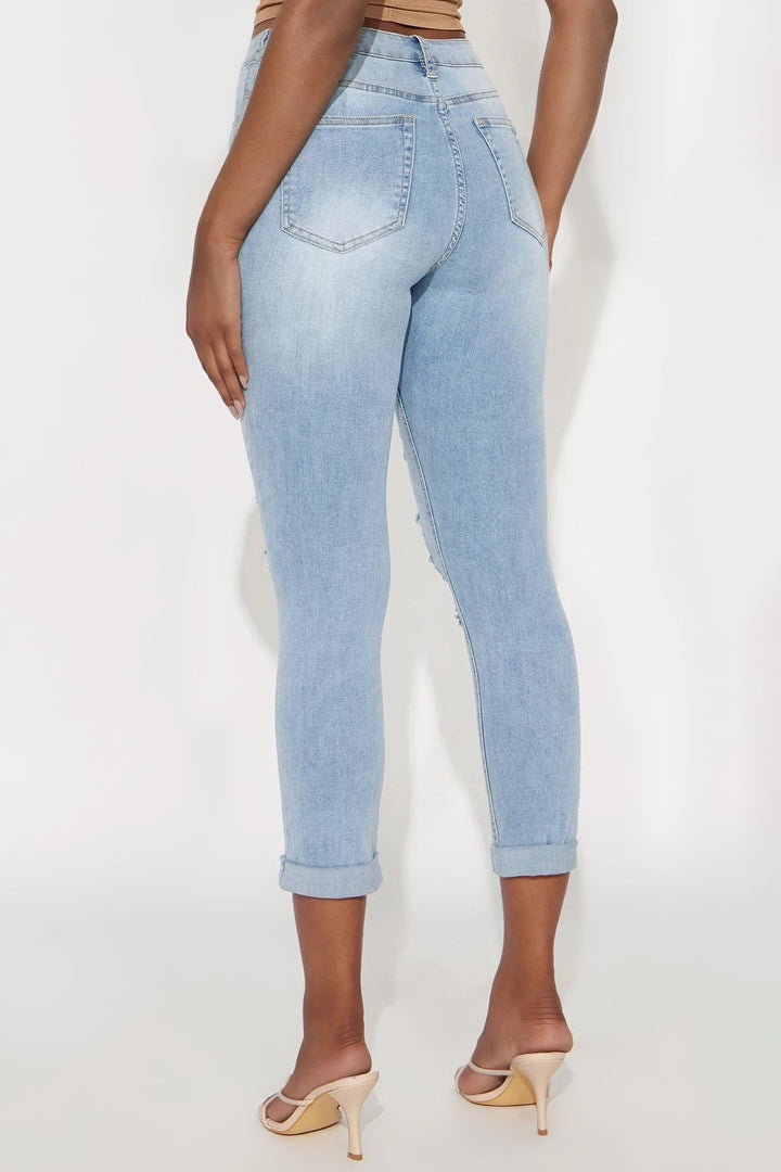 Available In Dark Wash, Light Blue Wash And Medium Blue Wash. | High Waisted | Available In Dark Wash, Light Blue Wash And Medium Blue Wash. | Distressed | Boyfriend Fit | Roll Cuff | Moderate Stretch | 5 Pockets | 10.5" Rise | 27" Inseam Rolled | 29.5" Inseam Unrolled | 73.5% Cotton 23% Polyester 2.5 % Viscose 1% Spandex | Imported