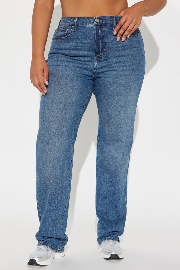 Available In Medium Blue Wash. | Available in Petite 29" Inseam, Regular 33.25" Inseam, And Tall 36" Inseam | Straight Leg Jean | Low Stretch | 10.75" High Rise | Disclaimer: Due To The Specialized Wash Process, Each Garment Is Unique. | 99% Cotton 1% Spandex | Imported