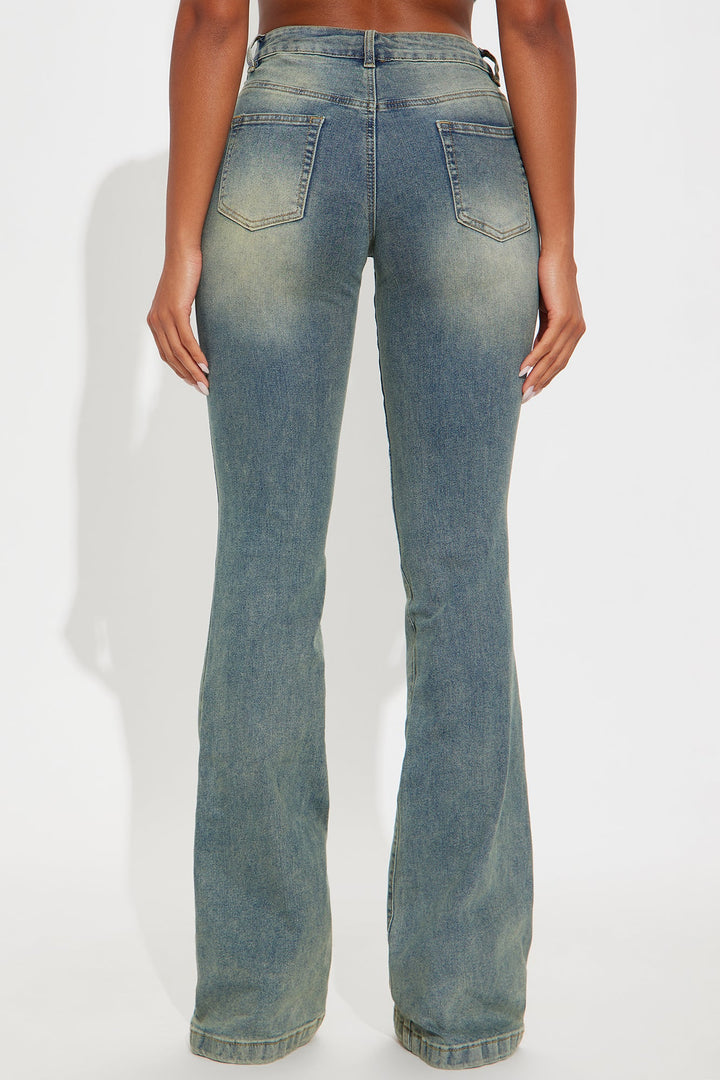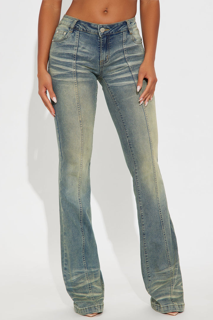 Available In Vintage Wash. | Available in Regular 34" Inseam & Tall 37" Inseam. | Flare Jean | 5 Pocket | Seaming | Tinted | 8" Low Rise | Medium Stretch | Disclaimer: Due To The Specialized Wash Process, Each Garment Is Unique. | 75% Cotton 23% Polyester 2% Spandex | Imported